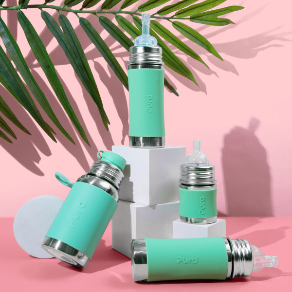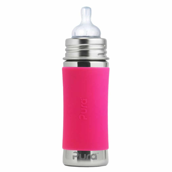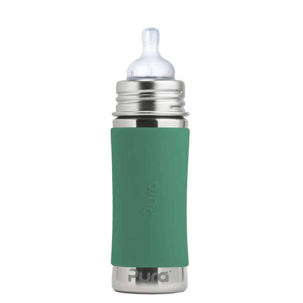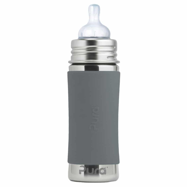 Konečne bezpečná fľaša vyrobená 100% bez plastových častí. S Pura fľašami si môžete byť istí, že sa do nápoja vnútri neuvoľňujú žiadne škodlivé látky a toxíny, ani príchute a pachy ako je tomu u plastových fliaš alebo fliaš s plastovými vrchnákmi. Na ničom nezáleží viac ako na zdraví Vašich detí a Vás.Pura fľaše sa navyše prispôsobujú a “rastú” s Vašim dieťaťom. Jednoduchou výmenou uzáverov sa fľaša mení z dojčenskej fľaše na fľašu s náustkom, slamkou alebo športovým uzáverom či na pohárik na príkrmy a občerstvenie. Môžete tak jednu fľašu používať mnoho rokov. One Life… One Bottle™.Najbezpečnejšia, najuniverzálnejšia, ľahká a nerozbitná ekologická fľaša ocenená viac ako 35 oceneniami. Prvá fľaša na trhu 100% bez plastových častí a jediná fľaša, ktorá získala certifikát Made Safe® . Baby Grows… Bottle Evolves™ - patentovaný systém umožňuje použiť akúkoľvek Pura fľašu s akýmkoľvek Pura uzáverom. Jednoducho tak zmeníte dojčenskú fľašu na fľašu s náustkom, slamkou, alebo športovým uzáverom alebo s použitím tesniaceho disku na pohárik na príkrmy a drobné občerstvenie. Jednu fľašu tak môžete používať roky a zároveň šetríte peniaze aj životné prostredie. Fľaša a objímka sú vyrobené z prvotriednej potravinárskej nerezovej ocele triedy 304 (18/8) a ostatné časti zo silikónu najvyššej medicínskej kvality. Bez BPA, PVC, ftalátov a bez akýchkoľvek iných nebezpečných látok a toxínov, testované podľa smerníc EÚ. Antikolikový cumlík Pura Natural Vent Nipple so stredným prietokom vyrobený zo silikónu medicínskej kvality. Fľaša je kompatibilná s cumlíkmi mnohých iných značiek. Mierka na vnútornej strane pre pohodlné a presné dávkovanie. Súčasťou je silikónový vrchnák chrániaci cumlík a vymeniteľný farebný silikónový návlek na fľašu pre lepšie uchopenie a izoláciu. Vhodné do umývačky riadu. Doživotná záruka na časti z nerezovej ocele. Nevzťahuje sa na mechanické poškodenie fľaše. Objem celkom: 325mlObjem značený: 275mlVáha: 172gRozmery: 5,7 x 19,7cmBalenie obsahuje: nerezovú fľašu 325ml, nerezovú objímku, antikolikový cumlík Pura Natural Vent Nipple (stredný prietok), silikónový návlek, silikónový vrchnák