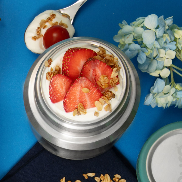 S produktami Pura si môžete byť istí, že sa z nich neuvoľňujú žiadne škodlivé látky, toxíny, ani príchute a pachy ako sa to deje pri plastových fľašiach alebo nádobách. Na ničom nám nezáleží viac ako na zdraví vašich detí a vás. Žiadne plasty… Žiadne obavy o bezpečnosť. Predstavujeme našu všestrannú nerezovú Pura termo nádobu na jedlo, ktorá je svojím tvarom a veľkosťou ideálnou termoskou na polievky, príkrmy, cestoviny, či studené jedlá ako jogurt, ovocný šalát, či zmrzlina a iné. Dokonca aj vnútro veka je čisto z nehrdzavejúcej ocele, aby vaše jedlo neprichádzalo do kontaktu s plastom a bola zaistená jeho čerstvosť a vynikajúca chuť. Kvalitná vákuová termoizolácia udrží jedlo v termoske teplé až 8 hodín alebo studené až 12 hodín. Nerezová termo nádoba je vyrobená z dvoch vrstiev prvotriednej potravinárskej nerezovej ocele triedy 304 (18/8) s izolačnou vákuovou vrstvou. Viečko z nehrdzavejúcej ocele so silikónovým návlekom, ktorý uľahčuje otváranie termosky. Silikónové tesnenie (tesniaci krúžok) zo 100% silikónu najvyššej medicínskej kvality, vďaka ktorému je termoska vodotesná. Nerezová termo nádoba Pura je navrhnutá pre pohodlie pri stravovaní mimo domu, na prechádzkach, na cestách, či v práci. Je ľahká, kompaktná a zmestí sa do vašej obľúbenej tašky alebo väčšej kabelky. Bez BPA, olova, BPS, PP, polypropylénu, ftalátov a bez akýchkoľvek iných nebezpečných látok a toxínov, testované podľa smerníc EÚ. Čistenie: Termo nádoba Pura je vhodná na umývanie v hornej časti umývačky. Odporúčame umývať ručne s použitím saponátu, dôkladne opláchnuť čistou vodou a nechať vyschnúť. Objem: 275 ml Celkové rozmery: 11,5 x 9,5 cm