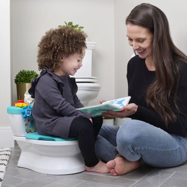 Pomôžte urobiť učenie na nočník jednoduchým, zábavným a odmeňujúcim so systémom na trénovanie na nočník. Tento nočník s postavičkou, ktorá sa objaví pri použití, realistickými zvukmi splachovania a melódiami a ideálnymi rozmermi si obľúbia deti od 18 mesiacov, ktoré sa učia používať toaletu ako veľké deti! Keď sa dieťa vyciká, objaví sa v nočníku postavička, ktorá oslávi jeho pokrok. Farebné ozubené kolieska na nádržke sa točia a vydávajú zvuky splachovania zakaždým, keď sa “spláchne”, čo podporuje jemnú motoriku. Má zabudovaný úložný priestor na potreby pri učení na nočník a miska je odnímateľná pre jednoduché čistenie. Redukcia sa dá odpojiť a použiť na väčšine oválnych alebo okrúhlych dospeláckych toaliet. Vlastnosti - trénovací nočník a zároveň redukcia na toaletu pre deti od 18 mesiacov. - Nočník s postavičkou, ktorá sa objaví pri použití odmeňuje dieťa, keď sa vyciká, a učí ho príčinu a následok a podporuje zvedavosť ohľadom používania toalety.- Miska je odnímateľná pre jednoduché čistenie. - Tlačidlo splachovania s farebnými točiacimi sa ozubenými kolieskami, ktoré vydávajú zvuky splachovania a hravú hudbu; Každým stlačením sa dieťa učí príčine a následku a buduje jemnú motoriku. - Odnímateľná redukcia na toaletu, ktorý pasuje na väčšinu oválnych alebo okrúhlych dospeláckych toaliet, pomáha deťom prejsť na klasickú toaletu, ako rastú.- Zabudované rúčky im pomáhajú cítiť sa bezpečne a chránič proti striekaniu udržiava všetko čisté. - Obsahuje 2 AAA batérie.- Zloženie materiálu 95 % plast, 2 % kov, 3 % elektronické časti- Veková skupina 18 - 60 mesiacov- Rozmery po zostavení (cm) 32,7 cm (V) x 26,6 cm (Š) x 39,5 cm (D)Dôležité: Pred odovzdaním výrobku dieťaťu odstráňte všetok obalový materiál a upevňovacie prvky. Obal uschovajte na budúce použitie. Obsahuje dôležité informácie. Len na použitie v rámci jednej rodiny.Adresa dodávateľa: KIDS2 EUROPE BV 5 Keizersgracht 287, 1016 ED Amsterdam, Netherlands; +31 20 241 0934.