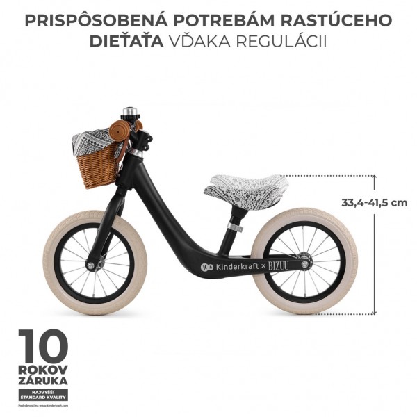Umenie rodičovstvaLimitovaná kolekcia Bizuu rozpráva príbeh o tom, aké môže byť rodičovstvo dnes – vedomé, emocionálne, krásne a zároveň hlboko osobné. Predstavuje nový začiatok a hovorí o tom, že byť rodičom je umenie. Bizuu je jazykom štýlu, harmónie a sebavedomia.Za touto kolekciou stojí spolupráca značky Kinderkraft a značky Bizuu, ktorá je celosvetovo známa originálnymi motívmi a kvetinovými vzormi. V r. 2024 navrhla Bizzu kolekciu pre poľský olympijský tím a pravidelne púta pozornosť médií ako aj časopisu Vogue. Objavte radosť z prechádzok v retro dizajne! Toto odrážadlo s košíkom sa určite bude páčiť deťom aj ich rodičom. Vďaka veľkým gumovým kolesám je ideálne na výlety po meste a aj na dobrodružstvá v lese. Dobre tlmia pri jazde na nerovnom teréne.Pohodlné sedlo poskytuje široký rozsah nastavenia výšky, takže odrážadlo rastie spolu s vaším dieťaťom. RAPID má tiež obmedzený uhol natočenia volantu, ktoré chráni vaše dieťa pred nekontrolovaným zatáčaním počas výuky jazdenia. A nízko posadený rám uľahčuje nasadanie a zosadanie. Odrážadlo RAPID, rovnako ako každé odrážadlo Kinderkraft, podporuje rozvoj rovnováhy a motoriky. Zároveň vo vašom dieťati vzbudí lásku k aktivitám na čerstvom vzduchu.Ľahké a pevnéRAPID je nielen štýlové, ale súčasne ľahké a pevné odrážadlo. Váži necelých 3,7 kg, a vďaka rámu zo zliatiny horčíka je taktiež neobyčajne odolné. Gumové rukoväteVolant má gumové rukoväte, ktoré sú navyše protišmykové. To uľahčí vášmu dieťaťu riadenie odrážadla v akejkoľvek situácii bez rizika, že mu ruky skĺznu z volantu. Súčasťou je krásny košík na drobnosti.Nízko posadený rámOdrážadlo RAPID je vhodné aj pre mladšie deti. Nízko posadený rám uľahčuje nasadanie a zosadanie aj nižším deťom.Nastaviteľná sedačkaDeti v tomto veku rýchlo rastú – preto má RAPID nastaviteľnú sedačku, ktorú ľahko prispôsobíte výške svojho dieťaťa. Sedačku je možné nastaviť v rozsahu 33,5-41,5 cm.Obmedzený uhol otočenia volantuOdrážadlo RAPID je vybavené funkciou obmedzenia uhla otočenia volantu. Tým sa eliminuje riziko náhleho, nekontrolovaného otáčania počas výuky jazdenia.Kolesá s amortizáciouOdrážadlo RAPID má veľké, gumové kolesá s ložiskami. Zabezpečujú dobrú amortizáciu rovnako počas jazdy na chodníku, ako aj na nerovných, lesných cestičkách. Technické parametre:- rám: zliatina horčíka (magnézium)- kolesá: gumové- košík: plastRozmery:- rozložené: 71 x 52,5 x 39,5 cm- nastavenie sedla: 33,5-41,5 cm- kolesá: 30 cm- hmotnosť: 3,7 kg(SK) Upozornenia! Treba používať ochranné prostriedky. Nepoužívať v dopravnej premávke. Hračka by sa mala používať na rovných povrchoch bez prekážok. Počas používania sa odporúča neustály dozor dospelej osoby. Tento produkt je určený pre jedného používateľa s maximálnou hmotnosťou 35 kg.Adresa dodávateľa: Supl4kraft sp. z o.o.ul. Tatrzanska 1/5,60-413 Poznan, Polandsupport@kinderkraft.comwww.kinderkraft.com