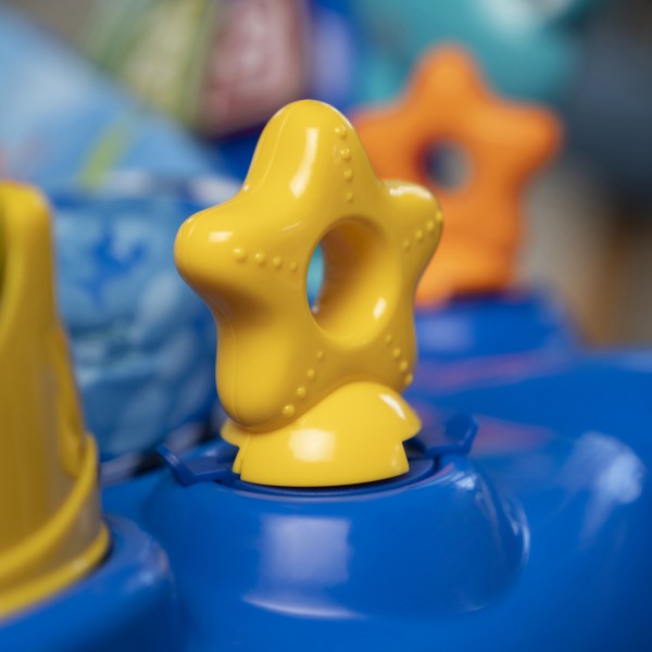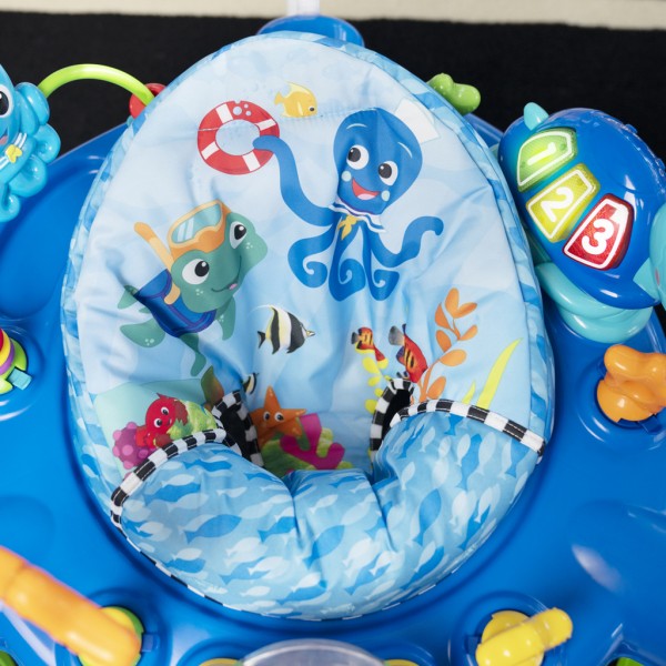 Podporte učenie s Baby Einstein skákadlom Neptune’s Ocean. Sedačka sa otáča o 360°, takže dieťa môže zažiť pohľady a zvuky oceánu zo všetkých strán, zatiaľ čo skáče, objavuje morský svet a hrá sa. Viac ako 15 aktivít a 3 herné režimy pomáhajú dieťaťu objavovať melódie, stimulovať zmysly, rozvíjať motoriku a učiť sa farby a čísla v troch jazykoch – angličtine, španielčine a francúzštine. Piesne a svetlá zabavia dieťa počas skákania a odnímateľná elektronická hračka korytnačka Neptune umožňuje dieťaťu objavovať svet učenia aj pri hre na podložke alebo na cestách. Skákadlo sa dá ľahko nastaviť do 4 rôznych výšok podľa vývoja dieťaťa a poskytuje bezpečný priestor na hranie a objavovanie pre deti od 6 mesiacov do 1 roka alebo do hmotnosti 11 kg. Poťah sedadla je možné prať v práčke. Tvrdé povrchy sa dajú ľahko utrieť. Rozmery po zostavení: 86,4 × 93,2 × 93,2 cm. Vyžaduje 3 batérie typu AA (nie sú súčasťou balenia).Vlastnosti:- Skákadlo 2v1 pre deti od 6 mesiacov do 1 roka, ktoré podporuje zmyslové objavovanie svetielkami, hudbou a zvukmi oceánu.- Viac ako 15 aktivít a 3 režimy: Klavírny režim umožňuje dieťaťu vytvoriť vlastnú skladbu; Melodický režim prehráva 10 piesní a 7 zvukov oceánu; Učebný režim učí farby a čísla v 3 jazykoch.- Skákadlo má 4 nastaviteľné výšky, ktoré rastú s dieťaťom; Sedačka sa otáča o 360° a obklopuje dieťa morom učenia a objavovania; Rozmery: 86,4 × 93,2 × 93,2 cm.- 6 interaktívnych hračiek na zapojenie dieťaťa: elektronická hračka Neptune, hračka rybička, sada kartičiek, chobotnicová hračka s korálkami, krabí točiaci sa prvok a hviezdica so zrkadlom; 3 pútka na pripevnenie ďalších hračiek.- Odnímateľná hračka korytnačka Neptune umožňuje dieťaťu objavovať hudbu a učebný obsah pri hre na podlahe alebo na cestách- Poťah sedadla je prateľný v práčke- Vyžaduje 3 batérie typu AA (nie sú súčasťou balenia).- Materiál – 50 % plast, 45 % kov, 5 % polyester.- Vekové rozpätie: 6 – 12 mesiacov- Hmotnosť dieťaťa: 0 – 11 kg- Rozmery po zostavení: 86,36 cm × 93,22 cm × 93,22 cm Dôležité: Pred odovzdaním výrobku dieťaťu odstráňte všetok obal a upevňovacie prvky. Tento obal a návod na použitie si uschovajte pre budúce použitie – obsahujú dôležité informácie. V rámci neustáleho procesu zlepšovania a inovácie naše výrobky priebežne aktualizujeme.Adresa dodávateľa: KIDS2 EUROPE BV 5 Keizersgracht 287, 1016 ED Amsterdam, Netherlands; +31 20 241 0934.