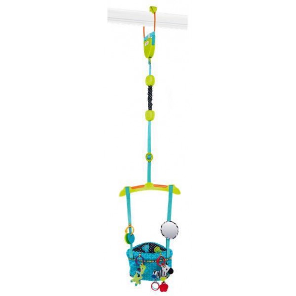 Nekonečná zábava v skákadle do dverí od Bright Starts - Spring Deluxe™Jasné farby a výrazné vzory upútajú zrak dieťaťa.Pevná zárubňová svorka umožňuje bezpečné upevnenie na dvere.Pásy je možné nastaviť podľa výšky dieťaťaSkákadlo obsahuje 4 interaktívne hračky:- plyšová zebra s hryzátkom a krúžkami podporujúca rozvoj hmatu a zraku- plyšová žirafa- C-krúžok s hryzátkom v tvare lístkov- nastaviteľné zrkadlo- mäkký vkladací vankúšik poskytuje oporu menším deťom- ľahký rám pre jednoduché prenášanie- sedaciu časť je možné prať v práčkeRozměr balení a specifikace:- skákadlo je vhodné pre deti od 6 mesiacov do 11 kg- rozmer výrobku: 33,02cm x 27,94cm x 183,52cmPoužívajte len pre hrúbku steny medzi 4 – 5” (10,2 – 12,7 cm) a s hrúbkou obloženia minimálne 0,5” (13 mm).Adresa dodávateľa: KIDS2 EUROPE BV 5 Keizersgracht 287, 1016 ED Amsterdam, Netherlands; +31 20 241 0934