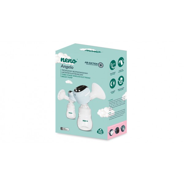 Neno Angelo je bezdrôtová trojfázová odsávačka mlieka. Je podobná ako odsávačka Neno Uno, ale s pridaným tretím režimom odsávania – takzvaným zmiešaným režimomLet-down, ktorý umožňuje efektívnejšie odsávanie materského mlieka. Je ľahká, prenosná a ergonomická - ideálna na výlety a použitie vonku.Fázy dokonale reprodukujú prirodzený rytmus sania dieťaťa. Každá z 3 fáz má 9 úrovní sania, z ktorých si môžete vybrať, čo vám dáva slobodu prispôsobiť si nastavenia podľa individuálnych potrieb. Na konci každého cyklu sa odsávačka mlieka automaticky vypne. Každý cyklus trvá 30 minút.Vlastnosti- 3 fázy: stimulačná, hĺbková a zmiešaná- Zmiešaná fáza je inovatívna fáza medzi odsávačkami, napodobňuje vzor sania dieťaťa, dá sa použiť na konci odsávania, aby pomohla vyprázdniť prsník a následne zvýšila laktáciu- Tichý operačný mód: tichá a kompaktná, vďaka čomu ju viete použiť aj v noci a nezobudiť dieťa či partnera- LED svetielko: vďaka vbudovanému LED podsvieteniu vie každá matka jednoducho a pohodlne odsať mlieko bez zapínania svetla aj v noci- Inteligentná technológia zabraňuje spätnému toku mlieka pri odsávaní- Vložka je z jemného silikónu, ktorý nedráždi pokožku- Displej s dotykovou obrazovkou- Neobsahuje BPATechnické vlastnosti- Rozmery: 82×67×64 mm - Doba nabíjania: 2 hodiny - Nabíjací port: USB typ-C - Automatické vypnutie: po 30 minútach - Počet fáz: 3-fázová odsávačka mlieka - 9 pracovných úrovní v každej fáze odsávania- Sací výkon v režime odsávania: 21,7–45,4 kPa - Sací výkon v režime stimulácie: 5,4–35,7 kPa - Sací výkon v zmiešanom režime: 22–44,8 kPa - Pracovný čas: až 120 minút - Obsah balenia: odsávačka Angelo, fľaša na mlieko s cumlíkom a uzáverom, 2× ventil, prsný štít 24 mm, kryt prsných chráničov, vrecká na uskladnenie mlieka, USB typ-C kábel, návod na použitie - Hmotnosť: 392 g