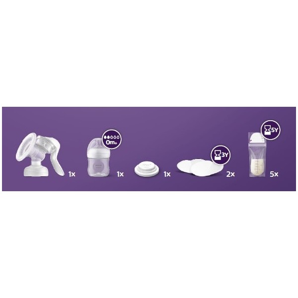 Pohodlné odsávanie, nech idete kamkoľvek.Technológia prirodzeného pohybu pre rýchly tok mlieka.Prenosná manuálna odsávačka mlieka Philips Avent s technológiou prirodzeného pohybu, ktorá je inšpirovaná saním dieťaťa a umožňuje rýchle vyprázdnenie. Vhodná pre všetky bradavky a ľahko nastaviteľný rytmus a podtlak. Nájsť správny cumlík je dôležité. Viac informácií nájdete nižšie.- Jednoduché čistenieĎalšie výhody:- Vyberte správny prietok cumlíka pre vaše dieťa- Pohodlné odsávanie- Stačí odsať a nakŕmiť- Ľahko spustí uvoľňovanie mlieka pred alebo medzi dojčeniami- Odsávajte bez predkláňania- Zvoľte si svoj rytmus, riaďte sa svojím tokom mlieka- Prenosné a praktické- Ideálne pre príležitostné odsávanie, všade a vždy- Jednoduchá, jemná a účinná- Jemná prispôsobivá silikónová vložka- Napomáha pri stimulácii toku mliekaUPOZORNENIE!- Odsávačku materského mlieka nikdy nepoužívajte počas tehotenstva, pretože odsávanie môže vyvolať pôrod.- Nedovoľte, aby sa so súčasťami odsávačky mlieka, baliacimi materiálmi či ostatným príslušenstvom hrali deti alebo zvieratá.- Pred každým použitím skontrolujte, či odsávačka mlieka nevykazuje známky poškodenia. Ak je odsávačka mlieka poškodená alebo nefunguje správne, nepoužívajte ju.Varovania na zabránenie kontaminácii a zaistenie riadnej hygieny:- Z hygienických dôvodov je odsávačka určená len na opakované používanie jednou osobou.- Všetky súčasti očistite a vydezinfikujte pred prvým použitím a po každom ďalšom použití.- Na čistenie súčastí odsávačky mlieka nepoužívajte antibakteriálne čistiace prostriedky ani tekutý piesok, pretože by ste ich mohli poškodiť.- Skôr než sa dotknete súčastí odsávačky a prsníkov, dôkladne si umyte ruky mydlom a vodou, aby ste zabránili kontaminácii. Nedotýkajte sa vnútornej strany nádobiek ani viečok.Varovania na zabránenie problémom vrátane bolestivosti prsníkov a bradaviek:- Pred zložením tela odsávačky z prsníka vždy najprv uvoľnite rukoväť, aby ste uvoľnili podtlak.- Ak je podtlak nepríjemný alebo vám spôsobuje bolesť, prestaňte odsávať a zložte si odsávačku mlieka z prsníka.- Ak sa vám nepodarí odsať žiadne mlieko do piatich minút, nepokračujte v odsávaní. Skúste odsávať v priebehu inej časti dňa.- Ak odsávanie začne byť veľmi nepríjemné alebo bolestivé, prestaňte používať odsávačku a poraďte sa so svojím odborníkom z oblasti starostlivosti o zdravie.- Používajte len príslušenstvo a súčasti odporúčané spoločnosťou Philips Avent.- Úpravy odsávačky mlieka nie sú dovolené.Varovanie: Ak ste nakazená vírusom ľudskej imunitnej nedostatočnosti (HIV) alebo hepatitídou typu B alebo C, používanie odsávačky mlieka nezníži ani neodstráni riziko prenosu vírusu na vaše dieťa prostredníctvom materskéhomlieka.Výstraha- Jednotlivé súčasti uchovávajte mimo vyhriatych povrchov, aby sa nezdeformovalAdresa výrobcu:Philips Consumer Lifestyle B.V., Tussendiepen 4, 9206 AD Drachten, The Netherlands, PH.CentralRegulatoryOfficer@philips.com