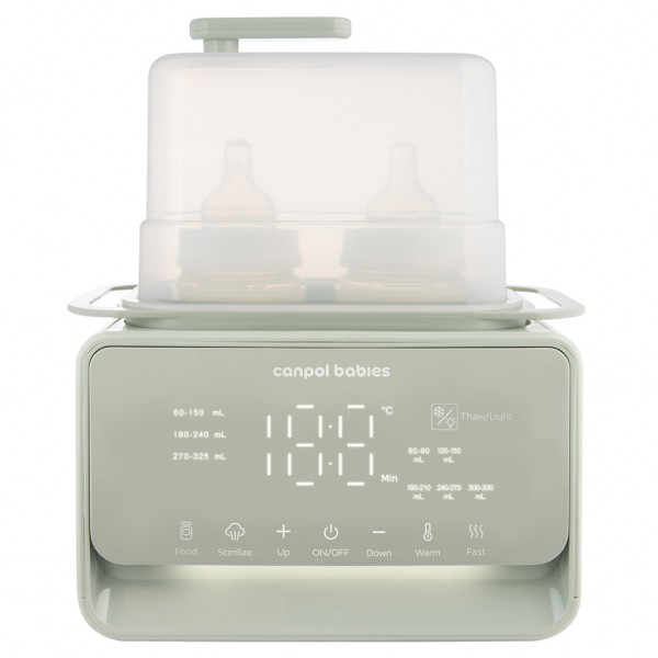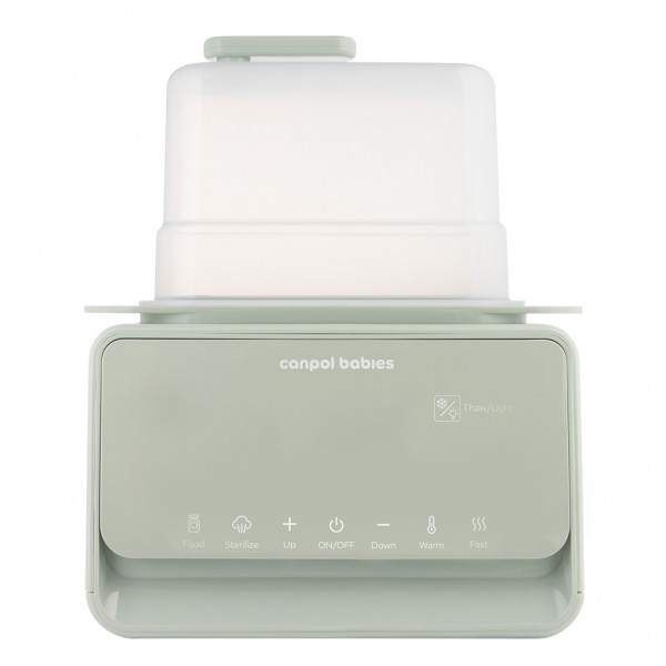 Elektrický ohrievač a sterilizátor fliaš Canpol babies 7v1 s termostatom a lampou je multifunkčné zariadenie, s ktorým je príprava jedla pre vaše dieťa rýchla a jednoduchá. Ponúka 7 rôznych režimov: ohrev mlieka, ohrev príkrmu/poháre, rýchly ohrev (za 2-3 minúty), rozmrazovanie, sterilizáciu, udržiavanie teploty a funkcie nočného svetla.Ohrievač rýchlo ohreje materské mlieko do 2-3 minút, v závislosti od veľkosti fľaše. Vďaka vstavanému termostatu udrží teplotu mlieka/jedla po celú noc – až 10 hodín, pri súčasnom ohreve dvoch fliaš. To zaisťuje, že jedlo máte pripravené presne v okamihu, keď ho potrebujete. S termostatom je všetko pohodlné a zároveň šetrí váš čas. Elektrický ohrievač 7v1 uľahčuje prípravu jedla na ideálnu teplotu iba za niekoľko minút – či už sa jedná o jedlo chladené alebo v izbovej teplote. Rovnomerne rozmrazuje a ohrieva jedlo na požadovanú teplotu v rozmedzí 20–40 °C, čo zaisťuje bezpečné ohrievanie, ktoré je šetrnejšie ako použitie mikrovlnnej rúry.Navyše sterilizátor Canpol babies dezinfikuje príslušenstvo na kŕmenie, cumlíky alebo časti odsávačiek materského mlieka za iba 10 minút. Kapacita koša je pre dve dojčenské fľaše a niekoľko cumlíkov naraz. Decentné nočné podsvietenie uľahčuje používanie zariadenia v noci bez toho, aby ste dieťa prebudili. Nemusíte zapínať jasnejšie zdroje svetla, ako sú nočné lampy alebo svetlo na telefóne.Elektrický ohrievač sa automaticky vypne, keď dôjde voda, čo zvyšuje bezpečnosť, najmä v noci, kedy môžete byť unavení, ospalí.Ohrievač Canpol babies umožňuje taktiež rovnomerne ohrievať poháre s detskou stravou a môže tak byť vašim skvelým dlhodobým pomocníkom aj počas rozširovania stravy dieťaťa. Hodí sa na všetky typy detských pohárov.Elektický ohrievač a sterilizátor Canpol babies 7v1 je vybavený dotykovým a intuitívnym ovládacím panelom, vďaka ktorému sa veľmi ľahko používa. Ohrievač a sterilizátor fliaš Canpol babies 7v1 s termostatom a lampou je nevyhnutným pomocníkom každej mamičky kŕmiacej z fľaše, a preto je nevyhnutnou súčasťou každej dojčenskej výbavičky.Vlastnosti:- Multifunkčný pomocník pri rozširovaní jedálnička a kŕmenie z fľaše. - Rýchly ohrev - mlieko je ohriate iba za 2 minúty!- S termostatom – udržuje teplotu po dobu až 10 hodín (2 fľaše súčasne). - S decentným nočným svetlom – uľahčuje nočné použitie bez toho, aby ste vaše dieťa prebudili. - Dezinfikuje detské príslušenstvo k fľašiam, cumlíky alebo časti odsávačky mlieka iba za 10 minút.- Postupne, bezpečne a rovnomerne rozmrazuje a ohrieva jedlo.- Rozmrazuje potraviny bezpečnejšie, šetrnejšie ako mikrovlnná rúra.- Rovnomerne ohrieva poháre s detskou výživou – dlhodobý pomocník pri rozširovaní jedálnička.- Ohreje na nastavenú teplotu v rozmedzí 20-40 °C.- Bezpečný – vypne sa automaticky akonáhle dôjde voda. - Sada obsahuje: veko so stupnicou a rukoväťou, kôš, základňu spotrebiča a odmerku so stupnicou. - Napätie: 220V ~ 240V, výkon: 500W.- Na výrobok sa vzťahuje dvojročná záruka platná od dátumu nákupu. - Číslo šarže nájdete na obale.- Pred použitím ohrievača a sterilizátora fliaš si starostlivo prečítajte celý návod na použitie.- Výrobok je určený iba na domáce použitie.