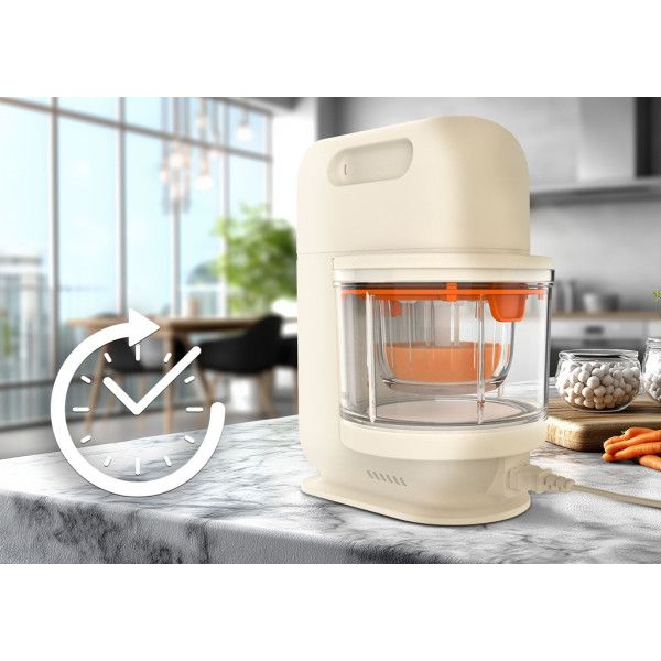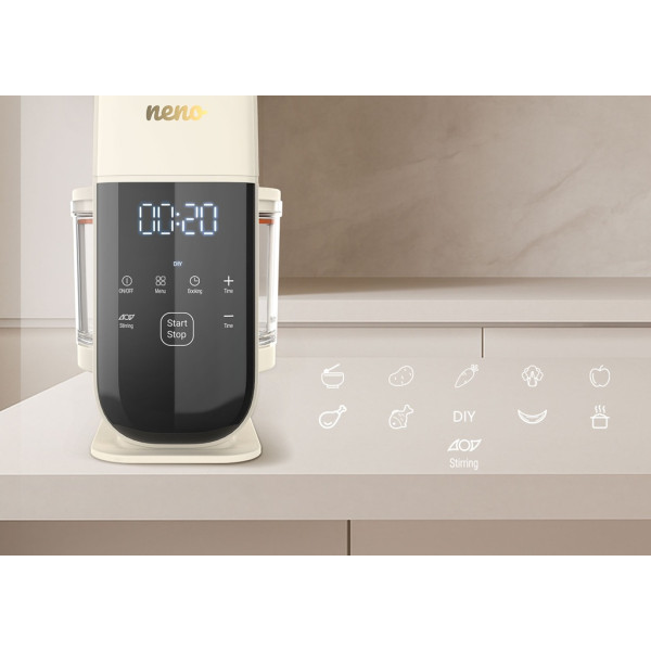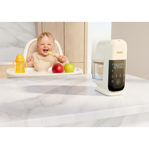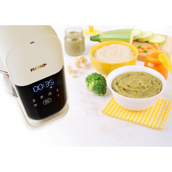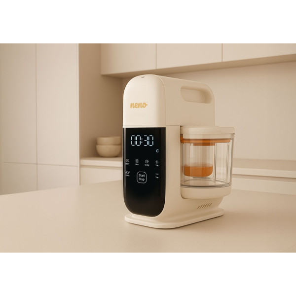 S Neno Oro sa varenie stáva jednoduchým, rýchlym a bez neporiadku! Tento multifunkčný prístroj kombinuje varenie v pare a automatické mixovanie, vďaka čomu zachováva cenné živiny a šetrí riad v kuchyni. Všetko, čo potrebujete na prípravu jedál pre vaše dieťa – v jednom kompaktnom zariadení.Vlastnosti:- 4 v 1 – varenie v pare, mixovanie, sekanie a udržiavanie teploty- Automatické mixovanie po dokončení varenia – bez ďalších krokov navyše- Udržiavanie teploty až 9 hodín – jedlo je pripravené kedykoľvek ho dieťa potrebuje- Funkcia odloženého štartu – možnosť naplánovať varenie až 24 hodín vopred- 11 inteligentných programov – optimálny čas a teplota pre každý pokrm- DIY režim – sloboda vo vlastnom nastavení varenia- Intuitívny dotykový panel – rýchla a pohodlná voľba funkcií- Používateľsky prívetivý dizajn – protišmyková základňa, kompaktné rozmery a 100 cm kábel- Bezpečné materiály – BPA free, spĺňa európske bezpečnostné normyObsah balenia:- Detský mixér s funkciou varenia Neno Oro- Odmerka- Návod na použitieTechnické parametre:- Model: Neno Oro- Napájanie: 220–240 V / 50 Hz- Výkon mixéra: 130 W- Výkon varenia: 500 W- Objem varnej nádoby: 250 ml- Maximálny objem zásobníka na vodu: 200 ml- Dĺžka kábla: 100 cm- Rozmery produktu: 185 × 150 × 255 mm- Hmotnosť: 1780 g- Hmotnosť balenia: 2,38 kgRozmery balenia: 23,5 × 20,5 × 30 cmDôležité: Používajte len podľa priloženého návodu. Zariadenie je určené na prípravu detských jedál pod dohľadom dospelých. Uchovávajte mimo dosahu detí. Nepoužívajte v blízkosti vody ani zdrojov tepla. Všetky časti prístroja sú vyrobené z bezpečných materiálov (BPA free) a spĺňajú európske normy.Adresa výrobcu: KGK Trend sp. z o.o., ul. Ujastek 5b, 31–752 Kraków, Poland. info@kgktrend.pl, NIP 678 315 51 46