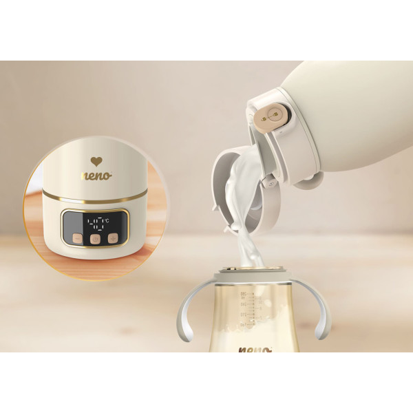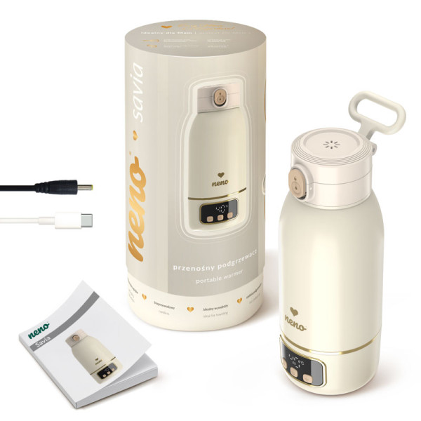 Neno Savia je bezdrôtový ohrievač, ktorý je ideálny na cestovanie, výlety aj každodenné použitie. Rýchlo ohrieva mlieko alebo vodu, udržiava ich teplotu a na jedno nabitie umožňuje ohriať tekutiny až osemkrát. Vďaka ľahkému a kompaktnému dizajnu, pohodlnej rukoväti a neprepúšťajúcemu uzáveru si ho môžete vziať kamkoľvek.Výhody a vlastnosti:- Bezdrôtové a efektívne ohrievanie: Ohrieva vodu až 8-krát na jedno nabitie, čo poskytuje viac slobody a menej stresu. Netreba hľadať žiadnu zásuvku a zariadenie je pripravené na cestu kedykoľvek a kdekoľvek.- Bezpečné ohrievanie materského mlieka: Neno Savia rýchlo ohrieva materské mlieko, ktoré je uložené v chladničke. - Rýchla príprava: Za 3 minúty ohrieva 150 ml vody na ideálnych 40°C (izbovej teploty), čo je veľmi efektívne pre rýchle podanie jedla dieťaťu.- Široký rozsah teplôt (35°C - 55°C): S nastaviteľným rozsahom teplôt si môžete prispôsobiť zariadenie podľa svojich potrieb a používať ho na ohrievanie mlieka, čaju alebo kávy.- Kompaktný a ľahký dizajn: Ohrievač je dostatočne malý, aby sa zmestil do vašej tašky. Je ideálny na prechádzky s dieťaťom či výlety alebo každodenné nákupy.- Tesniaci uzáver: Cestovanie s dieťaťom už nebude problém. Ohrievač je vybavený neprepúšťajúcim uzáverom a zámkom na tlačidlo, ktorý zabezpečí, že sa nič nevyleje a zariadenie sa nezapne samovoľne.- Veľká kapacita (500 ml): Má objem až 500 ml tekutiny, takže jedno ohrievanie vydrží na dlhšie. Tento praktický detail je užitočný počas prechádzok, keď budete potrebovať viac horúcej vody.- Presné nalievanie: Tvarovaný otvor na nalievanie zabezpečí nulový neporiadok - ideálne pre rodičov, ktorí oceňujú pohodlie a komfort.Technické parametre:- Kapacita: 500ml- Rozmery: 8 cm x 8 cm x 22,8 cm- Materiál: Nehrdzavejúca oceľ, PP, ABS a silikón- Balenie obsahuje: Ohrievač, nabíjací adaptér s káblom, USB-C kábel, návod na použitie.Varovania:Zariadenie nevkladajte do mikrovlnnej rúry, sterilizátora, rúry na pečenie ani umývačky riadu. Do zariadenia nenalievajte vodu s teplotou nad 80 ℃. Zariadenie neponárajte do vody ani iných kvapalín. Nepoužívajte so sýtenými výrobkami. Výrobok sami nerozoberajte ani neopravujte. Po úplnom nabití odpojte zariadenie od zdroja napájania. Tento výrobok nie je hračka. Aby ste zabránili zaduseniu a popáleniu, nedovoľte deťom hrať sa so zariadením. Zariadenie a jeho obal neukladajte na mieste, ktoré je ľahko prístupné deťom. Napájací zdroj a kábel uchovávajte mimo dosahu detí. Nepoužívajte výrobok, ak je niektorá jeho súčasť poškodená alebo chýba. Nepoužívajte iné príslušenstvo alebo náhradné diely, ako sú dodané. Pred ohrevom sa uistite, že je v jednotke kvapalina. Nedotýkajte sa horúceho vnútra zariadenia. Pred kŕmením dieťaťa skontrolujte teplotu jedla na zápästí. Nezabudnite ohriať materské mlieko na teplotu maximálne 40°C. Ohrievač by sa nemal používať na rozmrazovanie materského mlieka. Pri ohrievaní materského mlieka obsah ohrievača jemne premiešajte, aby ste zabezpečili rovnomerné ohrievanie. Neohrievajte iné výrobky ako tie, ktoré uvádza výrobca. Prístroj neskladujte v blízkosti vody alebo zdroja tepla. Plastové diely, ktoré sú dlhodobo vystavené slnečnému žiareniu alebo vysokým teplotám, sú náchylné na prirodzené javy starnutia, ako je napríklad žltnutie. Deti a dospelí, ktorí nie sú schopní sami obsluhovať zariadenie, by ho mali používať pod dohľadom opatrovníka.Dodávateľ: KGK Trend sp. z o.o., ul. Ujastek 5b, 31–752 Kraków, Poland. info@kgktrend.pl, NIP 678 315 51 46, www.neno.pl.