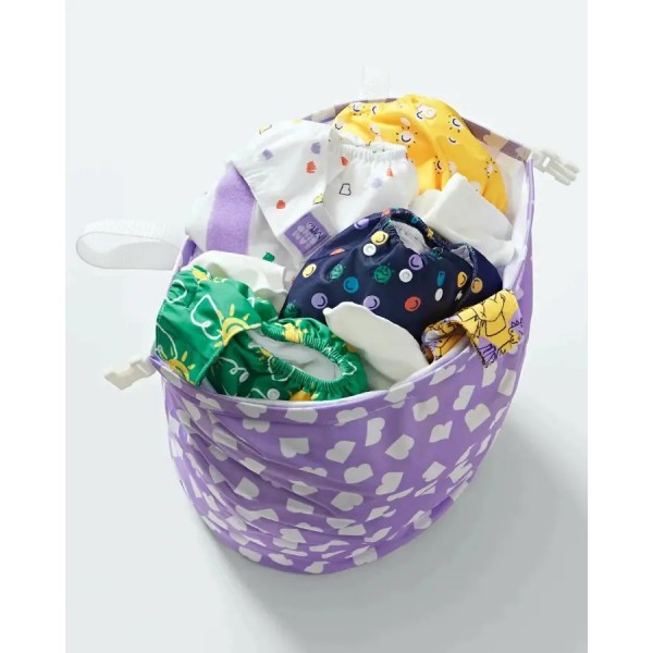 Superveľká nepriepustná taška na prepravu použitých plienok alebo mokrých plaviek! Je ideálna pre uloženie použitých plienok, zašpineného oblečenia či mokrých plaviek, keď ste mimo domova. Prázdna nezaberá žiadne miesto a keď je plná, dokonale chráni ostatné veci. Aj doma v nej možno pohodlne skladovať použité látkové plienky do ďalšieho prania bez toho, aby boli cítiť.Je navrhnutá tak, aby sa používala rýchlo a jednoducho – stačí plienky vložiť, okraj tašky stočiť a zapnúť.Vlastnosti:- Ekologicky šetrná alternatíva k jednorazovým vreckám a taškám na plienky.- Vyrobené z udržateľných materiálov (OEKO-TEX® Standard 100).- Dostatočne veľká na uskladnenie až 20 revolučných opakovane použiteľných plienok, alebo inej bielizne.- Praktické pútka na pohodlné zavesenie tašky na kočík alebo kdekoľvek u vás doma.- Jednoduché uzatváranie a otváranie.- Podlepené švy zaistia, že je taška vodotesná.- Dá sa prať v práčke.- Šírka vrchnej časti 53 cm.- Priemer spodnej časti 33 cm.- Výška 45 cm, po jednom prehnutí látky 41 cm.Varovanie: nenechávajte deti bez dozoru.Adresa dodávateľa: Bambinomio LTD, www.bambinomio.com