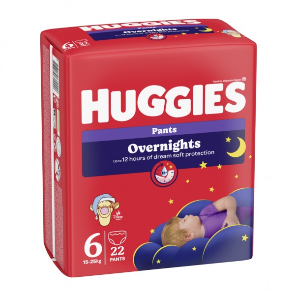 Nočné plienkové nohavičky HUGGIES® Overnights spoľahlivo chránia po celú dobu spánku, až 12 hodín. Mäkké a jemné pre pohodlný spánok. Technologia Quick Dry absorbuje tekutinu počas niekoľkých sekúnd. Dvojité manžety proti pretečeniu pre zvýšenú ochranu. Priedušné materiály umožňujú cirkuláciu vzduchu a pomáhajú udržať pokožku dieťatka v suchu. Indikátor vlhkosti zmení farbu, pokiaľ plienka obsahuje tekutiny. Ľahko sa obliekajú a vyzliekajú. 0% parfému, elementárneho chlóru, latexu (prírodného kaučuku). Dermatologicky testované. Veľkosť 6, pre deti s hmotnosťou 15-25kg. Počet kusov v balení 22.VAROVANIE: Plastové obaly - nebezpečenstvo udusenia. Uchovávajte obal mimo dosahu detí.Adresa výrobcu: Kimberly-Clark B.V., Copernicuslaan 35, 6716 BM Ede, Nizozemsko / Ochranné známky Kimberly-Clark Worldwide, Inc. nebo přidružených společností. © Ochranné známky značky KCWW (HUGGIES®, KLEENEX® LIDIE® KOTEX®) / www.kimberly-clark.com