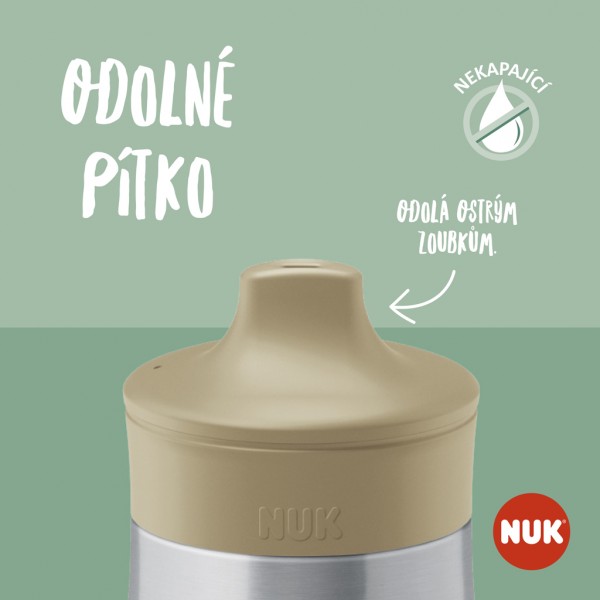 Fľaša NUK Mini-Me Sip z nehrdzavejúcej ocele - moderná detská fľaša na pitie. Bez BPA, netečúca, od 9 mesiacov, 1 kus- Spoľahlivý spoločník na každý deň - pre deti od 9 mesiacov.- S hrdlom odolným proti odhryznutiu, ktoré je vyrobené z viac ako 90 % z prírodných zložiek - odoláva drobným zúbkom dieťaťa- Robustné nerozbitné telo fľaše vyrobené z vysoko kvalitnej nehrdzavejúcej ocele- Odolná, nepriepustná, s ochranným viečkom na cesty- Možno kombinovať so všetkými výrobkami z radu NUK Mini-Me, objem 300 ml, bez BPAJe príjemné, keď dojčenská fľaša na pitie osloví nielen deti, ale aj rodičov. Nová fľaša NUK Mini-Me Sip je vhodná pre deti od 9 mesiacov. Vhodná pre deti - moderným a minimalistickým spôsobom. Praktická a štýlová zároveň. Nerozbitný plast je vyrobený z viac ako 90 % z prírodných surovín. Inovatívny cumlík hravo odolá detským zúbkom. Jasný záväzok k udržateľnosti a kvalite.Váš vzhľad - váš životný štýlNUK Mini-Me je systém, ktorý rastie s vaším dieťaťom. Vyberte si medzi nerezovou oceľou a nerozbitným plastom. Vyberte si z rôznych veľkostí. Vyberte si z pevného alebo vyklápacieho pítka. A môžete si zostaviť presne takú fľašu, akú potrebujete pre svoje dieťa. Nech už si vyberiete akýkoľvek model, fľaša netečie a je veľmi odolná. Stvorená pre prvé dobrodružstvá a všetko, čo príde po nich.Nová fľaša NUK Mini-Me predstavuje vzhľad a životný štýl, ktorý by ste radi zdieľali so svojimi deťmiĽahko sa čistíNa konci vzrušujúceho dňa sa fľaša veľmi ľahko čistí. Stačí fľašu rozobrať a umyť v teplej vode. Potom ju opláchnite a vytrepte prebytočnú vodu. Rozloženú fľašu nechajte voľne vyschnúť. Takto je fľaša v okamihu pripravená na ďalší deň.