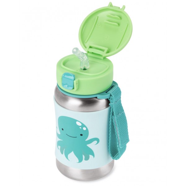 SKIP HOP Spark Style Fľaša so slamkou na vodu nerez Chobotnica 12m+