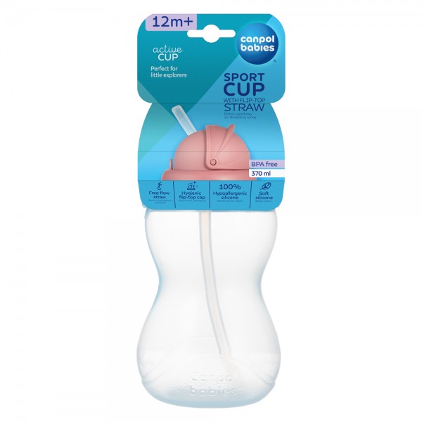 Praktická športová fľaša s objemom 370 ml bola navrhnutá tak, aby deti boli stále hydratované pri hre, učení a dobrodružstvách na čerstvom vzduchu alebo v škôlke. Skvelá voľba pre batoľatá, ktoré už vedia samostatne piť a deti chodiace do škôlky. Mäkká siliknová slamka s voľným prietokom je šetrná k citlivým ďasnám dieťaťa. Športová fľaša je vyrobená z nerozbitného a bezpečného plastu. Je ľahká a odolná proti poškodeniu. Tvar fľaše uľahčuje držanie v detských rukách a veľký otvor uľahčuje plnenie a umývanie. Určené pre studené nápoje alebo nápoje izbovej teploty. Možno ho umývať v umývačke riadu a ohrievať v mikrovlnnej rúre. Fľaša sa otvára a zatvára rýchlo a ľahko. Uzavretá športová fľaša je tesná a netečie. Špeciálny úchyt umožňuje pripevnenie na kočík alebo pás. Športová fľaša Canpol babies so silikónovou slamkou skvele podporí dieťa na pitie vody a rozvoj správnych návykov.Vlastnosti:- Silikónová slamka s voľným prietokom.- Ideálne pre batoľatá a deti do škôlky.- Skladacia slamka a pevné zatváranie.- Úchyt - je možné pripevniť napr. ku kočíku.- Vhodné do umývačky a mikrovlnnej rúry (iba fľaša).- Náhradné slamky nájdete pod číslom 56/106 v oddiele cumlíky a náuskty.Doplňujúce informácie:- Kapacita: 370ml- Slamka nie je určená pre deti do 6 mesiacov.- Športovú fľašu je možné umývať v umývačke riadu. Slamka sa neodporúča vkladať do umývačky riadu. Tvrdé chemikálie / detergenty môžu výrobok poškodiť.- Športovú fľašu je možné použiť v mikrovlnnej rúre.- Nie je vhodná na dezinfekciu a vyváranie.- Výrobok nie je vhodný do parného sterilizátora.Tvrdá voda, ovocná šťava alebo čaj môžu zanechávať škvrny na slamke alebo vytvárať vodný kameň, ktorý nemení jej vlastnosti. Husté tekutiny (napr. ovocné kaše) môžu upchať slamku. Športová fľaša nie je určená na podávanie horúcich alebo sýtených tekutínZ bezpečnostných a zdravotných dôvodov sa odporúča vymeniť slamku max. po 3 mesiacoch používania.Ako používať:Udržujte výrobok čistý. Pred prvým použitím výrobok rozoberte a vyčistite a potom vložte súčasti na 5 minút do vriacej vody. Ide o zaistenie hygieny. Pred prvým a každým použitím umyte všetky časti teplou vodou a jemným čistiacim prostriedkom, dobre opláchnite teplou vodou. Zalejte vriacou vodou. Pri čistení nepoužívajte ostré alebo abrazívne materiály. Po každom použití očistite športovú fľašu a slamku od zvyškov tekutín, opláchnite a dôkladne umyte vo vode. Všetky časti dôkladne umyte čistou vodou, vrátane oblastí, ktoré môžu byť neviditeľné, ale kadiaľ prešli potraviny, aby ste odstránili prípadné zvyšky jedla.Pri ohrievaní nápojov v mikrovlnnej rúre sa uistite, že je športová fľaša otvorená. Pri ohrievaní v mikrovlnnej rúre buďte obzvlášť opatrní. Ohriate potraviny vždy miešajte, aby sa zaistilo rovnomerné rozloženie teploty. Zahrievanie v mikrovlnnej rúre môže spôsobiť lokálne vysokú teplotu. Pred kŕmením vždy skontrolujte teplotu jedla. Nevkladajte výrobok do horúcej rúry ani nezahrievajte v plynovom/elektrickom sporáku.Pred každým použitím starostlivo skontrolujte. Pri prvých známkach poškodenie alebo opotrebenie vyhoďte.Nenechávajte svoje dieťa počas kŕmenia bez dozoru.