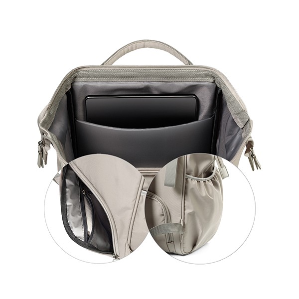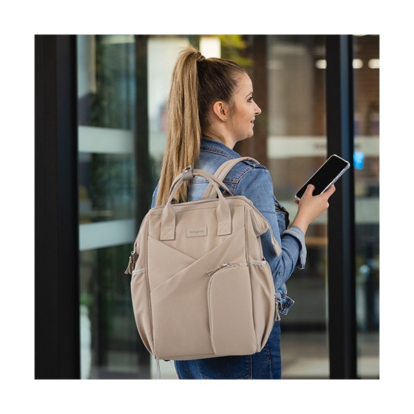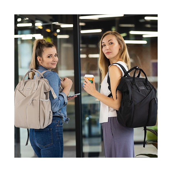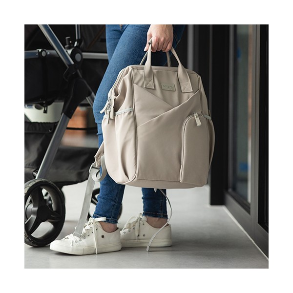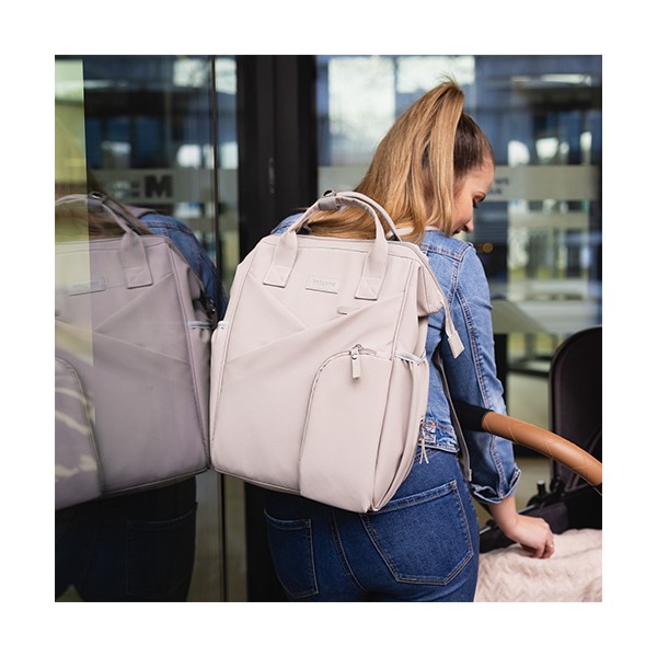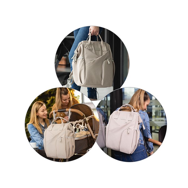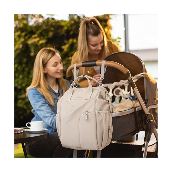 Moderný batoh pre rodičov v elegantnom štýle je dokonalým spoločníkom pre každodenné výzvy. Spája kompaktné rozmery s výnimočnou priestrannosťou a originálnym dizajnom. Ideálny pre milovníčky minimalizmu a prehľadnej organizácie. Vďaka priestrannosti sa doň zmestí všetko potrebné – plienky, fľaše, knihy, tablet aj drobnosti. Vo vnútri sa nachádza až 12 praktických vreciek, ktoré vám pomôžu udržať poriadok vo všetkom, čo potrebujete pre seba alebo bábätko.Vlastnosti:- Jednoduchý a nadčasový vzhľad so štýlovým prešívaním. Minimalizmus, ktorý upúta.- Môžete ho nosiť na chrbte, v ruke alebo pripevniť na kočík. Ideálny na prechádzky, výlety, do práce či školy.- Ľahký, vodeodolný a ľahko udržiavateľný materiál chráni obsah aj za nepriaznivého počasia.- 12 vreciek vrátane izolačného na fľašu, nepremokavého na mokré veci a špeciálneho priestoru na tablet alebo notebook.- Vďaka šikovnému prednému vrecku a dvojcestnému zipsu sa ľahko dostanete aj k veciam na dne.- Nastaviteľné ramenné popruhy a krátke držadlá zaručia komfort pri každom nosení.- Držiak na kľúče alebo cumlík zabezpečí, že už nikdy nebudete hľadať dôležité drobnosti a všetko bude na dosah ruky.- Súčasťou je hrubšia prebaľovacia podložka, ideálna aj na cestách.- Materiál: 100 % polyester - Rozmery: 40 cm x 27 cm x 19 cm Dôležité: Pred použitím sa uistite, že všetky zipsy a zapínania fungujú správne. Batoh nepreťažujte. Prispôsobte popruhy vašej postave pre zdravé nosenie. Noste záťaž rovnomerne rozloženú a striedajte ramená, aby ste predišli bolesti chrbta a ramien. Dávajte pozor na malé časti pri deťoch – riziko prehltnutia.Adresa dodávateľa: Babyono sp. z o.o., Kowalewicka 13, 60–002 Poznań, Poland. +48 61 83 90 520, info@babyono.pl, www.babyono.com.