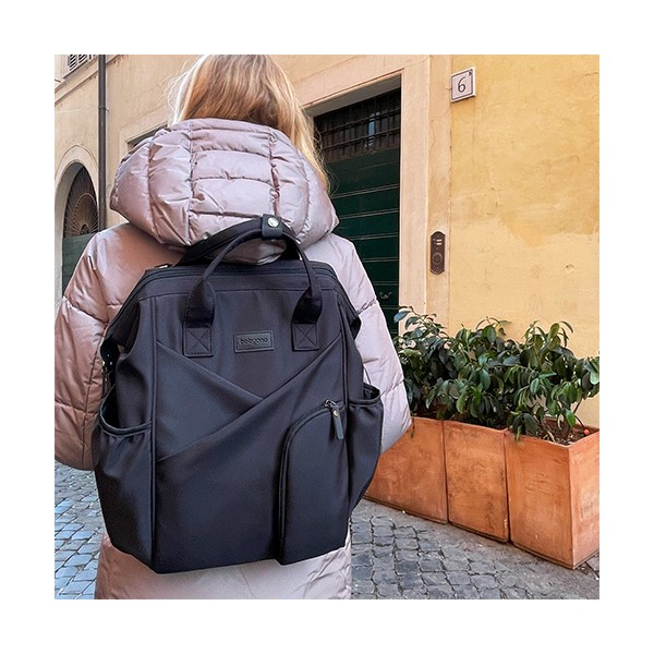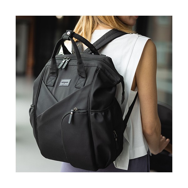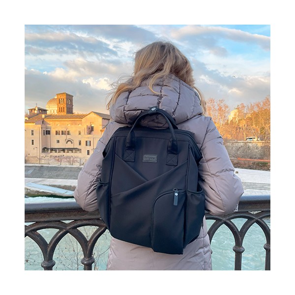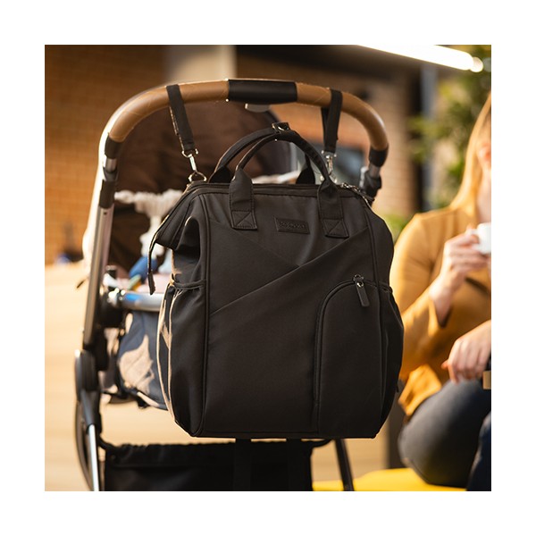 Moderný batoh pre rodičov v elegantnom štýle je dokonalým spoločníkom pre každodenné výzvy. Spája kompaktné rozmery s výnimočnou priestrannosťou a originálnym dizajnom. Ideálny pre milovníčky minimalizmu a prehľadnej organizácie. Vďaka priestrannosti sa doň zmestí všetko potrebné – plienky, fľaše, knihy, tablet aj drobnosti. Vo vnútri sa nachádza až 12 praktických vreciek, ktoré vám pomôžu udržať poriadok vo všetkom, čo potrebujete pre seba alebo bábätko.Vlastnosti:- Jednoduchý a nadčasový vzhľad so štýlovým prešívaním. Minimalizmus, ktorý upúta.- Môžete ho nosiť na chrbte, v ruke alebo pripevniť na kočík. Ideálny na prechádzky, výlety, do práce či školy.- Ľahký, vodeodolný a ľahko udržiavateľný materiál chráni obsah aj za nepriaznivého počasia.- 12 vreciek vrátane izolačného na fľašu, nepremokavého na mokré veci a špeciálneho priestoru na tablet alebo notebook.- Vďaka šikovnému prednému vrecku a dvojcestnému zipsu sa ľahko dostanete aj k veciam na dne.- Nastaviteľné ramenné popruhy a krátke držadlá zaručia komfort pri každom nosení.- Držiak na kľúče alebo cumlík zabezpečí, že už nikdy nebudete hľadať dôležité drobnosti a všetko bude na dosah ruky.- Súčasťou je hrubšia prebaľovacia podložka, ideálna aj na cestách.- Materiál: 100 % polyester - Rozmery: 40 cm x 27 cm x 19 cm Dôležité: Pred použitím sa uistite, že všetky zipsy a zapínania fungujú správne. Batoh nepreťažujte. Prispôsobte popruhy vašej postave pre zdravé nosenie. Noste záťaž rovnomerne rozloženú a striedajte ramená, aby ste predišli bolesti chrbta a ramien. Dávajte pozor na malé časti pri deťoch – riziko prehltnutia.Adresa dodávateľa: Babyono sp. z o.o., Kowalewicka 13, 60–002 Poznań, Poland. +48 61 83 90 520, info@babyono.pl, www.babyono.com.