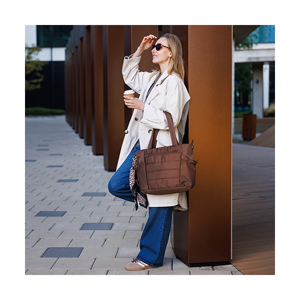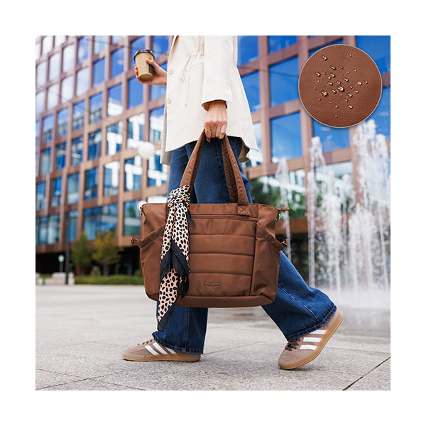 Prebaľovacia taška na kočík CAMI bola vytvorená pre aktívne mamičky, ktoré si cenia pohodlie, štýl a funkčnosť. Kombinuje športový design s elegantným šmrncom. Módna šatka so zvieracou potlačou dodá vášmu outfitu charakter a okorenie ho.Je veľká a priestranná, ideálna na nosenie bábätka aj dieťaťa. Má 10 vreciek, pútko na kľúče a prebaľovaciu podložku, čo vám umožní múdro usporiadať interiér. Je vyrobená z nepremokavého materiálu, venovali sme pozornosť detailom. Môžete ju zavesiť na kočík, nosiť v ruke alebo ju nosiť cez rameno.Taška CAMI pre mamičky - priestranná, všestranná a štýlová. Skvelý organizér do kočíka aj taška na každodenné nosenie.Vlastnosti:- PRIESTORNÁ: Táto veľká a priestranná taška na kočík pojme všetko, čo potrebujete pre svoje bábätko aj mamičku. Budete pripravení na akýkoľvek výlet.- ŠPORTOVÁ ELEGANCE: Štýlová taška pre mamičky je vyrobená s dôrazom na detail a navrhnutá s ohľadom na aktívne ženy. Kombinuje pohodlie a štýl a dobre sa hodí k teniskám aj šatám. Tašku môžete zavesiť na kočík alebo ju nosiť ako tašku na každodenné nosenie.- PRAKTICKÁ: Táto priestranná taška pre mamičky má 10 vreciek, vrátane 3 termo vreciek na fľaštičky. Môžete si do nich uložiť plienky, obrúsky, telefón alebo hračky. Vnútro si môžete usporiadať a rýchlo nájsť veci, ktoré potrebujete.- MÓDNA ŠATKA: Súčasťou tejto štýlovej tašky na kočík je krásna šatka so zvieracou potlačou. Môžete ho použiť ako dekoratívny prvok alebo ako štýlový doplnok - uviažte si ho okolo vlasov alebo krku. Spojíte módu s pohodlím.- PREBALOVACIA PODLOŽKA: Taška pre bábätká je dodávaná s veľkou, silnou prebaľovacou podložkou. Prebaľovacia podložka je ideálna na prechádzky a cestovanie. Pohodlne a hygienicky prebaľujte svoje dieťa na cestách.- PÚTKO NA KĽÚČE: Už žiadne šatranie po kľúčoch alebo cumlíku na dne tašky! Pripevnite ich na praktické pútlo – dlhý popruh s karabínou vo vnútri tašky. Vaše nevyhnutnosti budete mať vždy po ruke.- DRŽADLÁ: Vybavili sme ju tromi typmi rukovätí: odnímateľné bočné popruhy pre zavesenie na kočík, dlhý, nastaviteľný ramenný popruh a rukoväte. Dlhšie rukoväte vám umožnia pohodlne prehodiť tašku cez rameno.- VODEODOLNÝ MATERIÁL: Idete na prechádzku za každého počasia? Naša taška pre matku a dieťa, vyrobená z nepremokavého materiálu, bude perfektnou voľbou - neodolá dažďu ani snehu. Ľahko sa čistí a rýchlo schne.- MATERSTVO V ŠTÝLE: Byť matkou je mimoriadna rola – plná lásky, starostlivosti a každodenného zhonu. Ale uprostred toho všetkého nezabúdajte na seba! Každá mamička si zaslúži vyzerať módne, žensky a elegantne – každý deň, bez ohľadu na príležitosť. Objavte naše štýly, kde taška dopĺňa vzhľad a zvyšuje sebavedomie.Súčasť tašky:- šatka so zvieracou potlačou (65 x 65 cm)- prebaľovacia podložka- šnúrka na kľúče/cumlík- 10 vreciek, vrátane izolovaných vreciek na fľašu- odnímateľné bočné popruhy na kočík- dlhé uši na nosenie alebo prenášanie tašky cez rameno- nastaviteľný, odnímateľný ramenný popruh- hlavná priehradka so zapínaním na zips- štýlové prešívanieRozmery tašky: 45 x 12 x 30 cmDôležité:Pred použitím sa uistite, že všetky zipsy a zapínanie sú plne funkčné. Nepreťažujte tašku, aby ste predišli poškodeniu. Upravte popruhy batohu podľa svojho typu postavy, aby ste predišli bolestiam chrbta a nepohodlia. Dlhodobé nosenie ťažkej tašky alebo batohu môže viesť k bolestiam chrbta alebo ramien. Odporúča sa rovnomerne rozložiť hmotnosť v taške a striedať strany. Pokiaľ bude taška alebo batoh používaný v blízkosti detí, uistite sa, že malé časti (ako sú gombíky alebo patentky) sú bezpečne upevnené, aby sa zabránilo nebezpečenstvu udusenia.Adresa dodávateľa: Babyono sp. z O.O., Kowalewicka 13, 60 – 002 Poznań, Poland. +48 61 83 90 520, info@babyono.pl, www.babyono.com.
