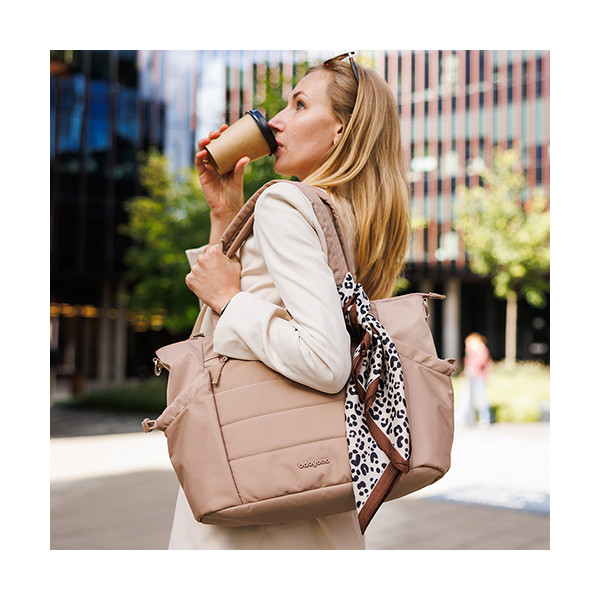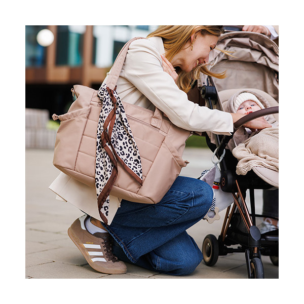 Prebaľovacia taška na kočík CAMI bola vytvorená pre aktívne mamičky, ktoré si cenia pohodlie, štýl a funkčnosť. Kombinuje športový design s elegantným šmrncom. Módna šatka so zvieracou potlačou dodá vášmu outfitu charakter a okorenie ho.Je veľká a priestranná, ideálna na nosenie bábätka aj dieťaťa. Má 10 vreciek, pútko na kľúče a prebaľovaciu podložku, čo vám umožní múdro usporiadať interiér. Je vyrobená z nepremokavého materiálu, venovali sme pozornosť detailom. Môžete ju zavesiť na kočík, nosiť v ruke alebo ju nosiť cez rameno.Taška CAMI pre mamičky - priestranná, všestranná a štýlová. Skvelý organizér do kočíka aj taška na každodenné nosenie.Vlastnosti:- PRIESTORNÁ: Táto veľká a priestranná taška na kočík pojme všetko, čo potrebujete pre svoje bábätko aj mamičku. Budete pripravení na akýkoľvek výlet.- ŠPORTOVÁ ELEGANCE: Štýlová taška pre mamičky je vyrobená s dôrazom na detail a navrhnutá s ohľadom na aktívne ženy. Kombinuje pohodlie a štýl a dobre sa hodí k teniskám aj šatám. Tašku môžete zavesiť na kočík alebo ju nosiť ako tašku na každodenné nosenie.- PRAKTICKÁ: Táto priestranná taška pre mamičky má 10 vreciek, vrátane 3 termo vreciek na fľaštičky. Môžete si do nich uložiť plienky, obrúsky, telefón alebo hračky. Vnútro si môžete usporiadať a rýchlo nájsť veci, ktoré potrebujete.- MÓDNA ŠATKA: Súčasťou tejto štýlovej tašky na kočík je krásna šatka so zvieracou potlačou. Môžete ho použiť ako dekoratívny prvok alebo ako štýlový doplnok - uviažte si ho okolo vlasov alebo krku. Spojíte módu s pohodlím.- PREBALOVACIA PODLOŽKA: Taška pre bábätká je dodávaná s veľkou, silnou prebaľovacou podložkou. Prebaľovacia podložka je ideálna na prechádzky a cestovanie. Pohodlne a hygienicky prebaľujte svoje dieťa na cestách.- PÚTKO NA KĽÚČE: Už žiadne šatranie po kľúčoch alebo cumlíku na dne tašky! Pripevnite ich na praktické pútlo – dlhý popruh s karabínou vo vnútri tašky. Vaše nevyhnutnosti budete mať vždy po ruke.- DRŽADLÁ: Vybavili sme ju tromi typmi rukovätí: odnímateľné bočné popruhy pre zavesenie na kočík, dlhý, nastaviteľný ramenný popruh a rukoväte. Dlhšie rukoväte vám umožnia pohodlne prehodiť tašku cez rameno.- VODEODOLNÝ MATERIÁL: Idete na prechádzku za každého počasia? Naša taška pre matku a dieťa, vyrobená z nepremokavého materiálu, bude perfektnou voľbou - neodolá dažďu ani snehu. Ľahko sa čistí a rýchlo schne.- MATERSTVO V ŠTÝLE: Byť matkou je mimoriadna rola – plná lásky, starostlivosti a každodenného zhonu. Ale uprostred toho všetkého nezabúdajte na seba! Každá mamička si zaslúži vyzerať módne, žensky a elegantne – každý deň, bez ohľadu na príležitosť. Objavte naše štýly, kde taška dopĺňa vzhľad a zvyšuje sebavedomie.Súčasť tašky:- šatka so zvieracou potlačou (65 x 65 cm)- prebaľovacia podložka- šnúrka na kľúče/cumlík- 10 vreciek, vrátane izolovaných vreciek na fľašu- odnímateľné bočné popruhy na kočík- dlhé uši na nosenie alebo prenášanie tašky cez rameno- nastaviteľný, odnímateľný ramenný popruh- hlavná priehradka so zapínaním na zips- štýlové prešívanieRozmery tašky: 45 x 12 x 30 cmDôležité:Pred použitím sa uistite, že všetky zipsy a zapínanie sú plne funkčné. Nepreťažujte tašku, aby ste predišli poškodeniu. Upravte popruhy batohu podľa svojho typu postavy, aby ste predišli bolestiam chrbta a nepohodlia. Dlhodobé nosenie ťažkej tašky alebo batohu môže viesť k bolestiam chrbta alebo ramien. Odporúča sa rovnomerne rozložiť hmotnosť v taške a striedať strany. Pokiaľ bude taška alebo batoh používaný v blízkosti detí, uistite sa, že malé časti (ako sú gombíky alebo patentky) sú bezpečne upevnené, aby sa zabránilo nebezpečenstvu udusenia.Adresa dodávateľa: Babyono sp. z O.O., Kowalewicka 13, 60 – 002 Poznań, Poland. +48 61 83 90 520, info@babyono.pl, www.babyono.com.