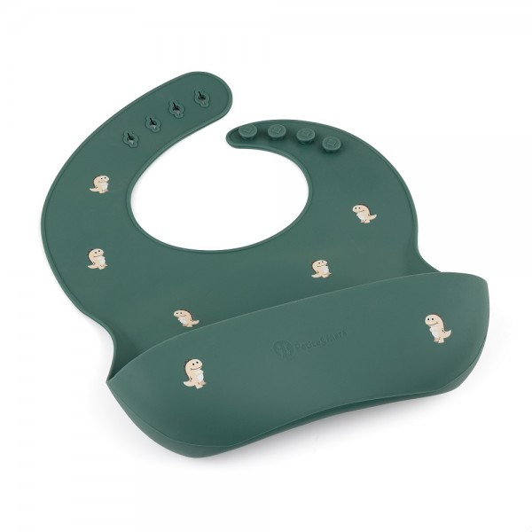 PETITE&MARS Podbradník silikónový Take&Match Green Dinos 6m+