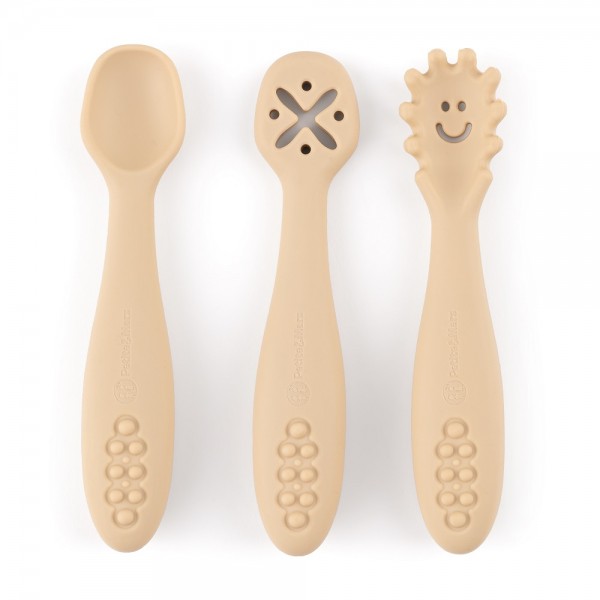 PETITE&MARS Set 3 ks silikónových tréningových lyžičiek Take&Match Desert Sand 6m+