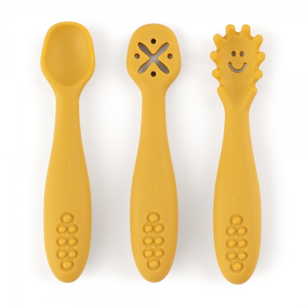 PETITE&MARS Set 3 ks silikónových tréningových lyžičiek Take&Match Intense Ochre 6m+