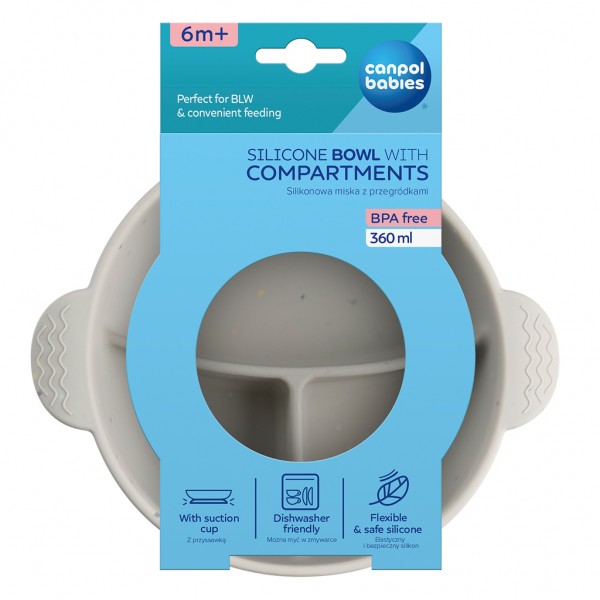 CANPOL BABIES Miska silikónová delená s prísavkou Dots 360ml - šedá