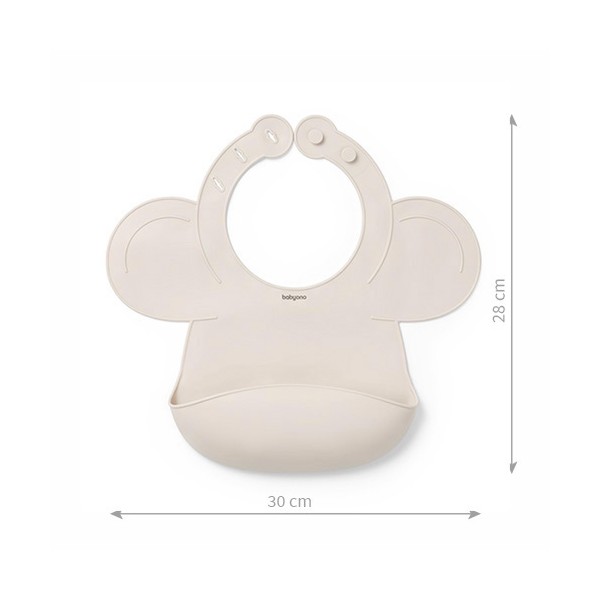Silikónový podbradník sa dokonale prispôsobí tvaru dieťaťa, čím mu poskytuje pohodlie. Vďaka zaobleným okrajom podbradník chráni väčšiu časť oblečenia dieťaťa pred znečistením. Ideálny na objavovanie nových chutí bez obáv z nečistôt.Vlastnosti: Ľahký - Jeho nízka hmotnosť ho robí takmer nepostrehnuteľným na krku. Deti sa môžu voľne pohybovať a hrať bez obmedzení.Ochrana - Vďaka zaobleným okrajom podbradník chráni väčšiu časť tela dieťaťa pred znečistením.Nastaviteľné zapínanie - Podbradník môžete prispôsobiť potrebám vášho dieťaťa, pretože má nastaviteľné zapínanie. Je ľahké a rýchle ho pripevniť a odopnúť.Silikónový materiál - Silikónový podbradník sa ľahko čistí. Môžete ho bezpečne umývať v umývačke riadu alebo ho rýchlo umyť pod tečúcou vodou.Vrecko na odrobinky - Vrecko zabraňuje tomu, aby zvyšky jedla padali na podlahu alebo oblečenie.Technické vlastnosti- Materiál: silikón- Vek dieťaťa: 6 m+- Veľkosť produktu: 30 cm x 28 cmBezpečnostné informácieOdstráňte všetky bezpečnostné prvky, ktoré by mohli byť pre dieťa nebezpečné.Skontrolujte produkt pred každým použitím. Pri prvom náznaku poškodenia alebo opotrebenia - vyhoďte ho.Vždy používajte pod dohľadom dospelej osoby. Produkt nie je hračka.Odporúčame uchovať obal na informačné účely. Uchovávajte obal mimo dosahu detí.Adresa dodávateľa: Babyono sp. z o.o., Kowalewicka 13, 60–002 Poznań, Poland. +48 61 83 90 520, info@babyono.pl, www.babyono.com.