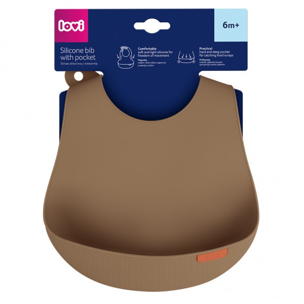 LOVI Silikónový podbradník s vreckom je veľkým pomocníkom pre rodičov - chráni pred nečistotami v čase, keď sa dieťa učí samostatne jesť. Je vyrobený z ľahkého, mäkkého a bezpečného silikónu. Pevné a hlboké vrecko zachytáva zvyšky jedla, pohodlne obopína bruško a zasahuje doširoka do bokov bábätka. Nastaviteľná spona a ergonomický tvar podbradníka, najmä jeho tvarovanej strany, zaisťujú voľnosť pohybu. Podbradník má originálny dizajn vďaka unikátnej štruktúre vrecka a tiež sa ľahko čistí a je vhodný do umývačky.Vlastnosti- ľahký a mäkký, pohodlný- profilovaný tvar- pevné a hlboké vrecko- bezpečný silikón- je ľahké ho zapnúť a rozopnúť pomocou jednej ruky- je možné ho zrolovať- ľahké čistenie- mäkký, ľahký silikón a profilovaný tvar zaisťujú slobodu pohybu.- praktický- Tvrdé a hlboké vrecko na zachytávanie zvyškov jedla, vrecko obopína bruško a zasahuje doširoka po stranách dieťaťa.- Rozdielna hrúbka a pevnosť materiálu: zosilnený na vrecku av mieste zapínania, zvyšok podbradníka je tenší, jemný pre dieťa.- Bezpečný silikón pre kontakt s potravinami- Ergonomický tvar: prispôsobený akémukoľvek detskému telu, tvaru bruška a paží dieťaťa.- Nastaviteľné zapínanie: umožňuje prispôsobiť podbradník dieťaťu na krk.- Jednoduché skladovanie: po zbalení zaberie málo miesta.- Originálne- Unikátna štruktúra na vrecku.- Možnosť tvorby setu- Jednoduché kombinovať s LOVI riadom.Vhodné pre deti od 6 mesiacov.Produkt neobsahuje BPA.Pre bezpečnosť a zdravie vášho dieťaťaPOZOR!Tento výrobok používajte vždy pod dohľadom dospelej osoby.Pred každým použitím výrobok skontrolujte. Zahoďte pri prvom náznaku poškodenia alebo slabosti.Pred kŕmením vždy skontrolujte teplotu jedla.Adresa výrobcu: Canpol Sp. z o.o.02-884 Warszawa, ul. Puławska 430, Polska Słubica B, ul. Graniczna 4, 96-321 Żabia Wola, Poland tel. (+48 46) 858 00 00fax: (+48 46) 858 00 01babies@canpolbabies.comwww.canpolbabies.com
