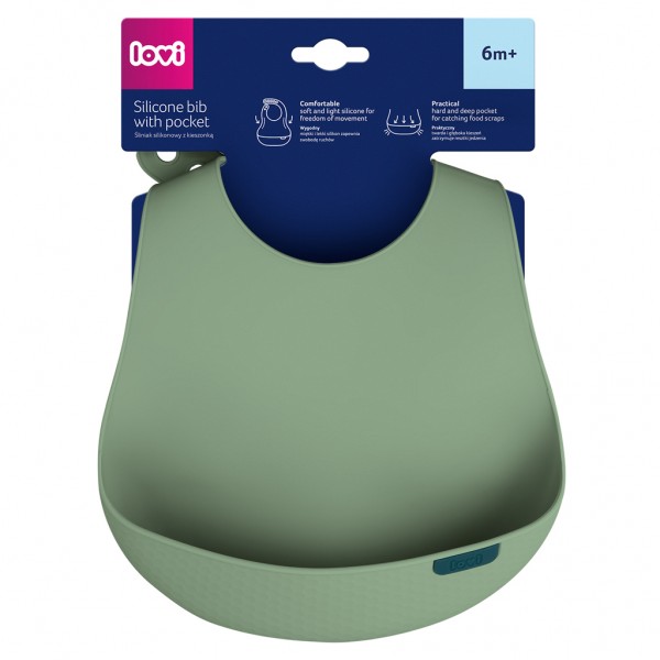 LOVI Podbradník silikónový s vreckom - Pistachio