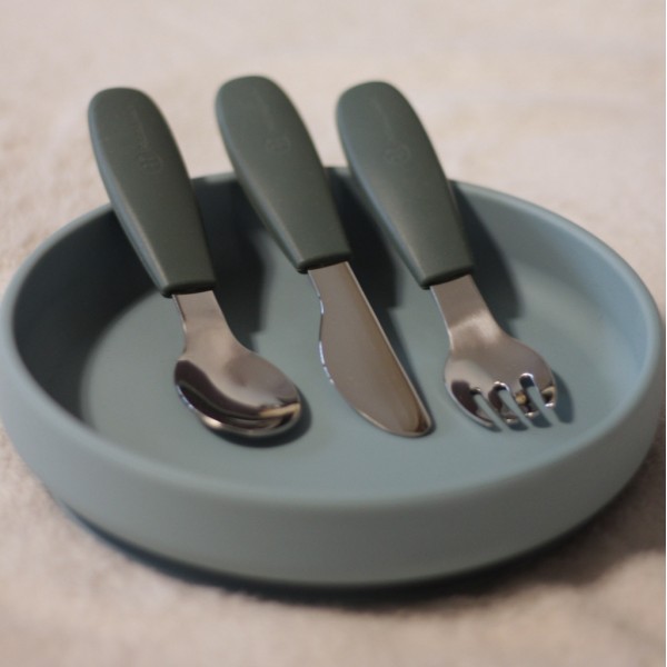 Séria TAKE&MATCHKombinuj podľa svojej chuti.Vyber si produkty, ktoré tvoje dieťa potrebuje a kombinuj ich v obľúbených farbách.Kolekcia jedálenských pomôcok TAKE&MATCH je dostupná v štýlových, starostlivo vybraných farbách, ktoré sa navzájom skvelo dopĺňajú. Všetky prvky môžeš ľubovoľne kombinovať a vytvoriť si tak bezpečnú a praktickú jedálenskú súpravu pre svoje dieťatko – presne podľa svojho vkusu. Vďaka tejto sérii sa kŕmenie stáva nielen jednoduchým, ale aj vizuálne príjemným a zábavným zážitkom.Bezpečný, pohodlný a štýlový prvý príbor pre malé detské rúčkyPríbor PETITE&MARS je ideálnou kombináciou funkčnosti, bezpečnosti a štýlu – navrhnutý pre deti od 12 mesiacov. Sada obsahuje lyžičku, vidličku a nôž, ktoré pomáhajú dieťaťu naučiť sa jesť samostatne – deň čo deň, jedlo za jedlom.Funkčné časti sú vyrobené z kvalitnej nehrdzavejúcej ocele, rukoväte sú ergonomické a potiahnuté mäkkým silikónom vhodným na kontakt s potravinami – ideálne prispôsobené detským rúčkam. To zaručuje pohodlný a istý úchop a podporuje správne stravovacie návyky.Zaoblené hrany zvyšujú bezpečnosť a moderný dizajn krásne ladí s ostatným detským riadom.Hlavné vlastnosti:- Kompletná sada – 3 diely: lyžička, vidlička a detský bezpečný nožík- Ideálne na samostatné jedenie – prispôsobené veľkosťou aj tvarom- Nehrdzavejúca oceľ + silikón – hygienické, odolné a vhodné pre deti- Protišmykové ergonomické rukoväte – ľahko uchopiteľné pre malé deti- Zaoblené hrany – bezpečné a jemné pri každodennom používaní- Moderný minimalistický vzhľad – dokonale ladí s detským riadom- Jednoduché čistenie – vhodné do umývačky riaduŠpecifikácia:- materiály: nehrdzavejúca oceľ (funkčné časti), potravinársky silikón (rukoväte)- bez BPA a ftalátov- odporúčaný vek: od 12 mesiacov- rozmery: lyžička a vidlička – 13 × 3 cm, nožík – 14 × 2,5 cmBalenie obsahuje: 1 lyžička, 1 vidlička, 1 nožíkUPOZORNENIEPre bezpečnosť a zdravie dieťaťa odstráňte všetky obalové a upevňovacie časti pred prvým použitím. Nenechávajte dieťa bez dozoru počas jedla. Vždy skontrolujte teplotu jedla alebo nápoja pred podaním. Zabráňte kontaktu s ostrými predmetmi, ktoré môžu poškodiť povrch výrobku. Používajte výhradne pod dohľadom dospelej osoby. Pred každým použitím výrobok skontrolujte. Pri prvých známkach poškodenia alebo oslabenia materiálu výrobok zlikvidujte. Informácie o produkte si uchovajte na budúce použitie.Adresa dodávateľa:ags92 s.r.o., Drahobejlova 2515/18, 190 00 Praha, Česká republikainfo@petiteetmars.com