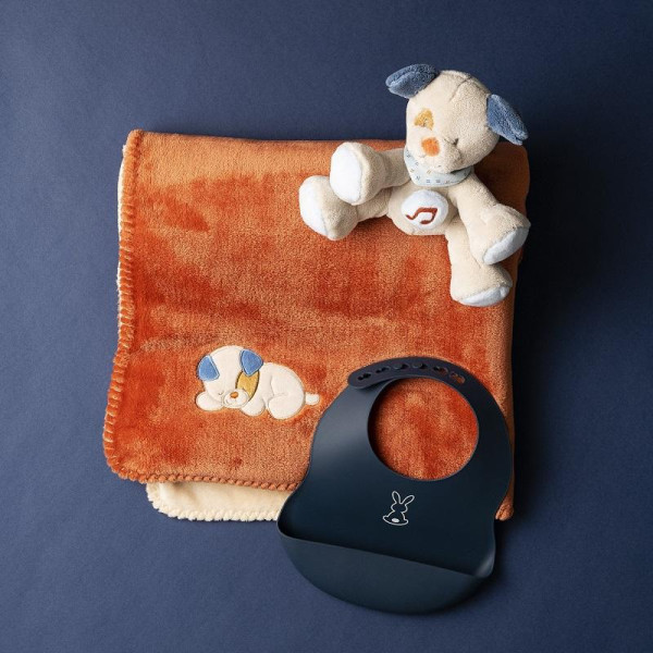 NATTOU Podbradník silikónový so zapínaním tmavomodrý bez BPA