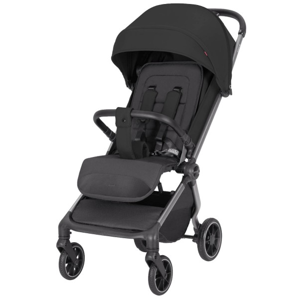5‑bodový bezpečnostný pás, otočný nárazník a protišmykový popruh zaisťujú dieťaťu pohodlie a istotu.