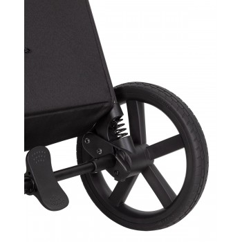 Citlivé dvojité brzdy a mäkké pružinové odpruženie s nastaviteľnou tuhosťou. Odolné gumené kolesá s priľnavým dezénom a predné kolesá sa automaticky zablokujú praktickým spínačom.