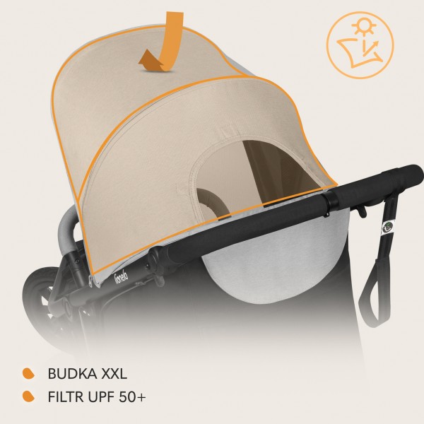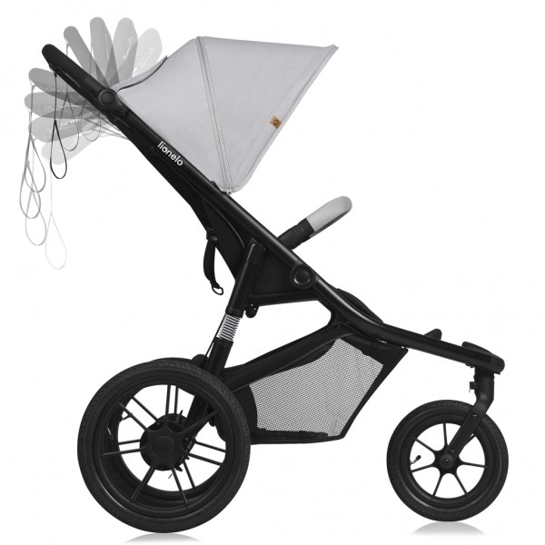 Kočík Lionelo Azura je všestranný kočík, ktorý sa skvele hodí na každodenné použitie aj pre všetky druhy fyzických aktivít. Nafukovacie kolesá v kombinácii s celoodpruženým systémom zaisťujú veľmi pohodlné ovládanie aj na nerovnostiach. V záujme pohodlia dieťaťa sme zaistili možnosť nastavenia operadla do polohy v ľahu. Priestranná XXL strieška navyše dieťa nielen chráni pred vetrom alebo dažďom, ale aj pred nadmernými podnetmi. Rodičia ocenia ako ručnú brzdu, ktorá uľahčuje rýchle zastavenie kočíka, napríklad pri jazde, tak tradičnú centrálnu brzdu, ktorá je ideálna pre každodenné používanie. Kočík je vhodný pre deti od 6 mesiacov do hmotnosti 22 kg.Vlastnosti:- Od 6 mesiacov do 22 kg- Nafukovacie kolesá- Multifunkčné použitie: každodenný a športový kočík- Vodovzdorná XXL strieška- Plné odpruženie- Pumpička je súčasťou dodávkyPrečo ju budú rodičia milovať?- Kočík Azura je ideálny pre rodičov, ktorí hľadajú multifunkčný kočík do každého terénu. Tento model je vhodný do mesta, na hory aj na pláž.- Priestranná konštrukcia poskytuje veľké pohodlie pri jazde a dvojstupňový systém skladania znamená, že kočík je možné ľahko uložiť do batožinového priestoru auta a kamkoľvek ho odviezť.Nafukovacie kolesá: Tri priestranné (30 a 39 cm) nafukovacie kolesá zaisťujú veľmi pohodlnú manipuláciu a manévrovateľnosť, ktorá uľahčuje prekonávanie prekážok. Kolesá sa môžu voľne otáčať o 360° av prípade potreby ich je možné tiež zablokovať pre jazdu priamo vpred.Multifunkčnosť: Kočík Azura je ideálny pre každodenné, športové alebo terénne použitie. Dvojitý skladací systém umožňuje zloženie do kompaktnej veľkosti pre jednoduchú prepravu a skladovanie. Reflexné prvky použité na koši zaisťujú dobrú viditeľnosť po zotmení.Odpruženie: Kočík je plne odpružený spredu dozadu, takže sa skvele vyrovnáva s prekážkami. Pohodlné polstrovanie rámu kočíka umožňuje slobodnú prechádzku aj v náročnejšom teréne, na pláži alebo pri športe.Pohodlie pre dieťa: Široké a vysoké sedadlo zaisťuje dieťaťu pohodlie pri prechádzke a tiež dlhú životnosť kočíka. Plynulo nastaviteľné polohovanie operadla naopak umožňuje batoľatám pohodlne si zdriemnuť. Odnímateľný vetrací panel za sedadlom zaručuje voľnú cirkuláciu vzduchu.Brzda: Ručná lanková brzda sa skvele hodí pre aktívne prechádzky a uľahčuje rýchlu reakciu. Kočík Azura má navyše centrálnu brzdu ovládanú nohou, ktorá zaručuje pohodlie pri každodenných prechádzkach.Slnečná strieška XXL: Veľkorysá nepremokavá XXL strieška s prídavným panelom na zips je vybavená filtrom UPF50+ a vodoodpudivou vrstvou chrániacou pred dažďom. Magnetická strieška s priezorom umožňuje mať dieťa neustále na očiach. Súčasťou sady je aj funkčná ochranná fólia proti dažďu.Magnetické pásy: Päťbodové bezpečnostné pásy je možné ľahko zapnúť vďaka magnetickej spone – stačí ich priblížiť k spone bez toho, aby ste museli jednotlivé diely ručne uťahovať. Špeciálne kryty popruhov chránia jemnú pokožku dieťaťa pred odrením.Riešenie pre rodičov: Nastavenie rodičovskej rukoväte v 9 pozíciách umožňuje nastaviť výšku tak, aby vyhovovala potrebám každého opatrovateľa. Veľký a ľahko prístupný košík na nákupy s vreckom na fľašu je skvelý na každodenné použitie. Ku kočíku Azura je možné tiež zakúpiť špeciálne adaptéry na autosedačku, ktoré umožňujú pripevnenie autosedačky k podvozku.Technické parametre:- rozmery: 130 d x 113 v x 60 š (cm)- hmotnosť: 13 kg
