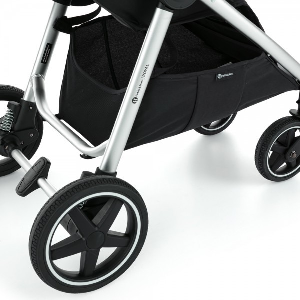 Prinášame Vám NOVINKU! Kúpte si zvlášť konštrukciu a zvlášť striešku zo širokej ponuky farieb. Striešku kedykoľvek vymeníte a kočík sa Vám tak nikdy nezunuje.Elegantná a pevná hliníková konštrukcia s celogumovými kolesami s madlom a rukoväťou v príjemnej hnedej eko-koži.Royal je kráľ medzi kočíkmi Petite&Mars a to vďaka svojej elegancii, bohatej výbave a prepracovaným detailom. Zároveň je ľahko ovládateľný, s výbornými jazdnými vlastnosťami a ocení ho aj Vaše dieťa, ktoré sa v ňom bude cítiť komfortne za každého počasia.Celogumové kolieska sú najmodernejším materiálom na trhu a Royal tak zabezpečuje stabilnú jazdu v každom teréne.Balenie obsahuje:- Konštrukciu kočíka s celogumovými kolieskami- Poťah sedadla- Prebaľovaciu tašku- Čierny nánožníkPre kompletný kočík je potrebné dokúpiť striešku Royal. Vlastnosti:- rýchly a jednoduchý systém skladania a rozkladania kočíka jednou rukou- veľmi kvalitné a odolné poťahové látky- odnímateľný poťah športovej časti pre jednoduchú údržbu a čistenie- výškovo nastaviteľná rukoväť z eko-kože sa prispôsobí každému rodičovi- odnímateľné madlo potiahnuté eko-kožou je plne otočné a odnímateľné- veľká opierka chrbta pre maximálne pohodlie dieťaťa- 5bodové nastaviteľné bezpečnostné pásy s polstrovaním- jednoduchý systém polohovania opierky chrbtovej opierky do akejkoľvek pozície až do takmer úplného ľahu pomocou popruhov- elegantne prešitú opierku nôh možno polohovať do 3 pozícií- praktická priestranná prebaľovacia taška na všetky potrebné veci je súčasťou výbavy- nánožník na prechodné a zimné obdobie, ktorý chráni dieťatko pred nepriaznivým počasím- ľahká a pevná hliníková konštrukcia- kvalitný úchyt kolies, ktorý zabezpečuje stabilitu kočíka počas jazdy- veľký priestranný a ľahko dostupný nákupný košík- vodeodolná úprava látok- ľahké odpružené celogumové kolesá so štýlovým bielym lemom zabezpečia pohodlnú jazdu- kočík je ľahko ovládateľný vďaka otočným predným kolesám s možnosťou aretácie- centrálna brzda, ktorá zablokuje pohyb kočíka- poistka proti rozloženiu kočíka Špecifikácia:- Maximálna hmotnosť dieťaťa v kočíku: od 0m do 22 kg- Hmotnosť kočíka: 9,90 kg - Rozmery rozloženého kočíka: v- 111 cm, š- 57 cm, d- 86 cm (s kolieskami)- Šírka sedadla: 36cm- Hĺbka sedadla: 22cm- Dĺžka chrbtovej opierky: 47cm- Celková dĺžka spacej časti: 90cm- Rozmery zloženého kočíka: v- 36 cm, š- 57 cm, d- 75 cm (s kolieskami)- Priemer predného kolesa: 17 cm- Priemer zadného kolesa: 24,5 cm