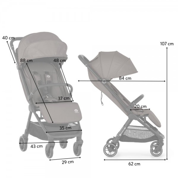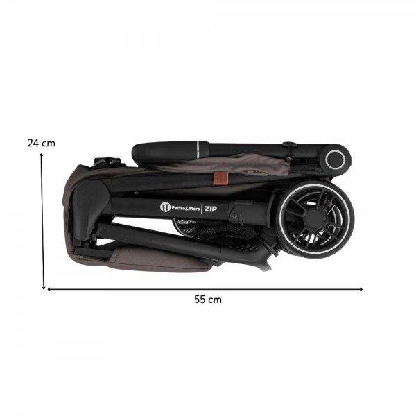 Jednoduché presuny, komfortné odvetranie, ľahkosť na každom krokuČi už vyrážate na dovolenku lietadlom, idete vlakom k starým rodičom alebo len prechádzate rušnými mestskými uličkami, ZIP je kočík, ktorý vám v tom všetkom uľahčí život – ušetrí čas, miesto a pritom poskytne pohodlie, nech ste kdekoľvek. Je navrhnutý tak, aby bol vždy tam, kde ho potrebujete – pripravený okamžite a bez zbytočných komplikácií.Vďaka automatickému skladaniu jednou rukou sa zloží rýchlejšie, než stihnete napočítať do troch. Tento jednoduchý mechanizmus oceníte najmä v situáciách, keď držíte dieťa na rukách, nesiete tašku alebo balíte nákup do auta. ZIP je postavený na princípe „menej starostí, viac slobody“ – rodič nemusí zápasiť s páčkami či poistkami, stačí jeden plynulý pohyb.Navrhnutý pre cestovanieZIP patrí medzi kočíky s kabínkovým rozmerom po zložení, takže ho môžete bez obáv vziať na palubu lietadla alebo uložiť do kufra aj menšieho auta. S hmotnosťou iba 7 kg ho bez problémov prenesiete v jednej ruke, pričom druhou môžete viesť dieťa. Pohodlie pre malého cestovateľa- ZIP je navrhnutý tak, aby bol komfortný aj pri dlhších výletoch. Priestranné sedadlo so šírkou 33 cm a výškou opierky 47 cm poskytuje dostatok miesta aj pre staršie alebo väčšie deti. Chrbtová opierka s odvetraním sa dá jednoducho nastaviť jednou rukou až do úplného ľahu – ideálne na popoludňajší spánok vonku.- Rozšíriteľná strieška s integrovaným šiltom s ochranou UPF50+ chráni pred ostrým slnkom, zatiaľ čo rodičovské okienko s tichým magnetickým uzáverom umožňuje nenápadný dohľad bez rušenia dieťaťa.- Bezpečnosť zaručuje 5-bodový bezpečnostný pás s magnetickou prackou – rýchle, jednoduché a bezstarostné zapínanie.- Odvetraná chrbtová opierka pre maximálne pohodlie dieťaťa bez potenia. Hladká a bezpečná jazdaZIP zvládne mestské chodníky aj menej upravené cesty v parku. Odpružené EVA kolesá (predné 5,5", zadné 6,5") sa postarajú o pohodlnú jazdu, a káblová brzda je umiestnená tak, aby neprekážala pri chôdzi. Ovládanie je plynulé, intuitívne a zvládnete ho aj jednou rukou.Praktické detaily, ktoré robia rozdielÚložný kôš s nosnosťou až 5 kg zvládne všetko potrebné – od hračiek po nákup. Materiály sú odolné, ľahko sa čistia a kočík si zachováva svoj vzhľad aj pri každodennom používaní. Vďaka premysleným detailom je ZIP kočík, ktorý s vami bez problémov zvládne ranný zhon, nákupy aj rodinné výlety.Čistenie a údržbaKovy a plasty utierajte vlhkou handričkou. Tkaniny čistite hubkou s teplou mydlovou vodou. Dobre opláchnite čistou vodou, aby ste zabránili vzniku škvŕn. Sušte v tieni, nevystavujte priamemu slnečnému žiareniu. Nebieľte ani nežehlite. Nečistite chemicky. Nepoužívajte abrazívne prostriedky, bielidlá ani silné domáce čistiace prostriedky. Pravidelne odstraňujte nečistoty z kolies, ktoré môžu obmedziť ich funkčnosť. Pravidelne mažte pohyblivé časti, najmä kolesá.Technické parametre- Rozmery rozloženého kočíka: 84 cm (dĺžka od predného kolieska k rukoväti) × 35 cm (šírka) × 107 cm (výška)- Dĺžka od predného kolieska k zadnému: 62 cm- Rozmery zloženého kočíka: 55 cm (dĺžka) × 43 cm (šírka) × 24 cm (výška)- Rozmer balenia: 56 × 45,5 × 27,5 cm- Hmotnosť: 7 kg- Maximálna nosnosť: 22 kg- Nosnosť nákupného košíka: 5 kg- Šírka sedadla: 37 cm- Hĺbka sedadla: 20 cm- Dĺžka chrbtovej opierky: 48 cm- Dĺžka celej spacej časti: 88 cm- Priemer predného kolieska: 12,5 cm- Priemer zadného kolieska: 14,5 cm- Norma: EN 1888-2:2018UpozornenieNIKDY NENECHÁVAJTE DIEŤA BEZ DOZORU. Tento produkt nie je vhodný na beh alebo korčuľovanie. Vždy používajte bezpečnostné popruhy.Pred montážou a použitím produktu si prečítajte všetky pokyny.Výrobok nepoužívajte, ak je niektorá jeho časť zlomená, roztrhnutá alebo chýba.Skontrolujte výrobok pred montážou a pravidelne počas používania.Buďte si vedomí rizika otvoreného ohňa a iných zdrojov silného tepla.Uistite sa, že používatelia tohto produktu sú oboznámení s jeho správnym používaním.