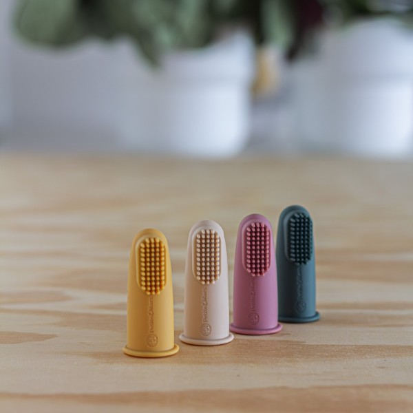 PETITE&MARS Sada silikónových zubných kefiek na prst Rose&Sand 2 ks 0m+
