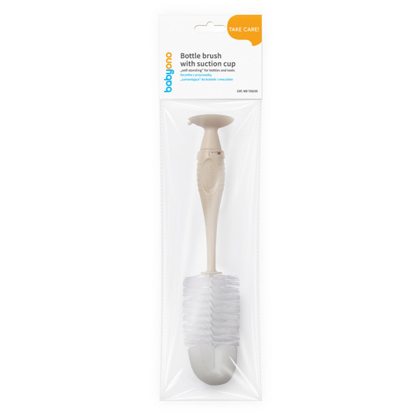 Čistiaca kefka vám pomôže dôkladne vyčistiť fľaštičky a cumlíky. Kefka má prísavku, ktorá umožňuje jej pripevnenie k rovným povrchom pre ľahké skladovanie a sušenie. Kefka má mäkkú hubovú špičku, ktorá uľahčuje čistenie dna fľaštičky. Malá kefka na čistenie cumlíkov je skrytá v rukoväti.Vlastnosti:- Praktická prísavka na pripevnenie- Praktický systém na uloženie kefky na cumlíky- Hubka na konci kefky uľahčuje čistenie dna liekovky- Pohodlné rukoväte zaisťujú pevný úchopBezpečnostné informácie:Pred každým použitím výrobok skontrolujte. Zlikvidujte pri prvom náznaku poškodenia alebo opotrebovania. Odporúčame uschovať obal pre budúce použitie. Uchovávajte obal mimo dosahu detí. Tento výrobok nie je hračka.Pred prvým použitím a po každom použití výrobok opláchnite vriacou vodou (nevarte!) a osušte.Adresa dodávateľa: Babyono sp. z o., Kowalewicka 13, 60 – 002 Poznań, Poland. +48 61 83 90 520, info@babyono.pl, www.babyono.com