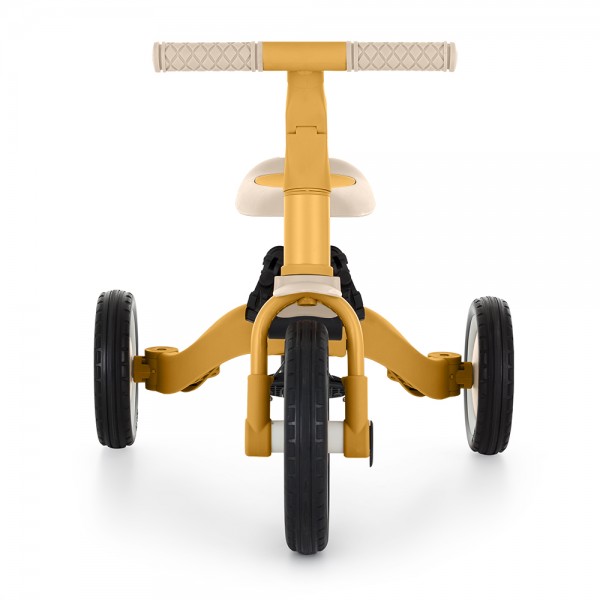 Od amatéra k profesionálovi / Od trojkolky k bicyklu Multifunkčná trojkolka určená pre deti od 1,5 do 5 rokov alebo do 25 kilogramov. Je to nielen dopravný prostriedok na presun a učenie sa rovnováhy, ale aj spoločník pre rastúce dieťa počas mnohých vývojových fáz. Premyslené menenie sa bicykla sa prispôsobuje potrebám dieřatka podľa toho, ako sa vyvíjajú jeho motorické schopnosti. Spočiatku je to trojkolka s možnosťou asistencie rodiča, zatiaľ čo konečná verzia je štandardný bicykel s pedálmi, bez akýchkoľvek ďalších podporných prvkov. Vďaka takýmto zmenám môžete pomôcť svojmu dieťaťu naučiť sa jazdiť na dvoch kolesách. Jedinečnou vlastnosťou bicykla je jeho multifunkčnosť, vďaka ktorej ho môžete používať v piatich rôznych režimoch v závislosti od veku a zručností dieťatka:- Režim tlačenie trojkolky - pre vek 1,5 - 2 roky - Režim trojkolky na posúvanie - pre vek 1,5 - 2 roky - Režim trojkolky s pedálmi - pre vek 2 - 3 roky - Režim balančného bicykla - pre vek 3 - 4 roky - Režim bicykla s pedálmi - pre vek 4 - 5 rokov Riadidlá s protišmykovými gumovými rukoväťami sú nastaviteľné, pedále sú odnímateľné a sedlo sa prispôsobí výške, pričom vďaka nastaviteľným bezpečnostným pásom je zaistená maximálna bezpečnosť. Vďaka odolným gumovým kolesám je bicykel ideálny pre dvoj- aj trojkolesové verzie, ktoré zaručujú stabilitu na rôznych povrchoch. Jednoduchý systém transformácie z jedného režimu na druhý nevyžaduje náradie a umožňuje rýchle zmeny podľa veku a zručností dieťatka. Napriek rozsiahlej funkčnosti zostáva ľahký a praktický, váži len 5,6 kg a má kompaktné rozmery: - v trojkolesovej verzii má dĺžku 67 cm, šírku 46 cm a nastaviteľnú výšku sedla od 31 do 37 cm. Vlastnosti:- 5 režimov v závislosti od veku a zručností dieťaťa - nastaviteľné riadidlá s gumovými rukoväťami - odnímateľné pedále - nastaviteľné sedlo s bezpečnostnými pásmi - odolné gumové kolieska - jednoduchý systém transformácie do iného režimu - určené pre deti od 1,5 do 5 rokov alebo do 25 kg. - dĺžka: 67 cm - šírka (trojkolesová verzia): 46 cm - výška (sedlo): 31-37 cm - hmotnosť výrobku: 5,6 kg