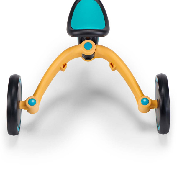 Skladacia trojkolka 4TRIKE bude dokonalým spoločníkom na čerstvom vzduchu bez ohľadu na to, či Vaše dieťa chce jazdiť na trojkolke alebo na minibicykli. 4TRIKE spojuje v sebe funkcie až 3 produktov: - minibicykel ako odrážadlo (jazda pre deti od 1 roku života),- minibicykel balančný bezpedálový,- minibicykel pedálový. Predstavte si čerstvý, osviežujúci vzduch a vietor vo vlasoch - to všetko sprevádzané teplým slnečným žiarením dopadajúcim na tvári vysmiateho dieťaťa! Vezmite prilbu do jednej ruky a ľahký a šikovný bicykel do druhej a vydajte sa spolu s batoľaťom spoznávať nepoznané kedykoľvek počas roka! 4TRIKE bol navrhnutý na podporu rozvoja hrubej motoriky Vášho dieťaťa.Trojkolka 4TRIKE sa prispôsobuje schopnostiam rastúceho dieťaťa - umožňuje batoľaťu vychutnať si jazdu už od 1 roka života. Navodí v ňom lásku k fyzickej aktivite a tiež mu umožní naučiť sa bezpečne jazdiť na bicykli. 4TRIKE je jedinečný detský bicykel, ktorý Vám umožní rýchlo meniť funkcie bez potreby náradia. Vďaka hliníkovému rámu je ľahký, takže keď sa dieťa rozhodne spoznávať svet na vlastných nohách, môžete bicykel ľahko chytiť za špeciálnu rukoväť na volante a vziať ho so sebou.Ak má Vaše dieťa radosť z rozmanitosti, so 4TRIKE bude pre neho každý deň niečo nové. Dieťa sa môže samo rozhodnúť, ktorú funkciu bicykla v súčasnosti použije - a môžete ju zmeniť niekoľkými jednoduchými pohybmi. Nastaviteľné sedalo umožňuje ešte lepšie nastavenie bicykla na výšku dieťaťa a protišmykové úchyty na volante zlepšujú úchop malých rúk. Starostlivá povrchová úprava a zaoblené tvary ako aj plné penové kolesá zvyšujú bezpečnosť batoľaťa počas jazdy. 4TRIKE je ideálny na výučbu jazdy: má obmedzenú funkciu blokovania riadenia, ktorá minimalizuje riziko straty rovnováhy a pádu. Ďalej môžete kedykoľvek odpojiť pedály (pre zmenu 4TRIKE z trojkolky na odrážadlo) a schovať ich pod pohodlné sedalo. Budú vždy po ruke.Keď je čas ísť domov, môžete ľahko zložiť bicykel do kompaktnej veľkosti a vložiť ho do košíka kočíka. Vďaka malým rozmerom je možné 4TRIKE po skončení hry vložiť do šatníka alebo umiestniť do rohu miestnosti - nezaberá veľa miesta. Trojkolku 4TRIKE je možné používať aj doma. Nebudete sa báť daždivého počasia – dieťa sa bude môcť naučiť jazdiť doma. Penové kolieska sú tiché a nebudú škriabať podlahu. Môžete si ho vziať so sebou aj na dovolenku - jeho kompaktné rozmery a možnosť zloženia z neho robia perfektný bicykel na každú cestu. Nechajte sa unášať aktívnym hraním s 4TRIKE a nechajte si každú prechádzku dlho v pamäti!Výhody:Bezpečnosť:- obmedzenie zámku riadenia zabráni nadmernému prudkému krúteniu volantom pri učení sa jazde na bicykli.- protišmyková úprava na úchopoch volantu umožňuje malým rukám pevné uchopenie a lepšiu kontrolu nad volantom.- starostlivá povrchová úprava, zaoblené hrany a absencia vyčnievajúcich prvkov zabraňujú zraneniam.- celopenové kolesá bez otvorov a tyčiek zvyšujú bezpečnosť pri jazde – sú vhodné pre domácu hru aj hru vonku. Sú ľahké a odolné.Pohodlie:- pohodlné, profilované a anatomicky tvarované sedadlo urobí z každej, aj tej najdlhšej jazdy, skutočné potešenie pre dieťa.- 4TRIKE umožňuje jednoduchú a rýchlu zmenu funkcií bez potreby náradia. Môžete to robiť doma, pred vychádzkami aj na prechádzke, zatiaľ čo sa bavíte.- pod sedadlo je možné pripevniť pedále, ktoré je možné odopnúť bez použitia náradia (na premenu 4TRIKE z trojkolky na odstrkovací bicykel). Vždy sú po ruke a pri chôdzi sa nestratia.- na prepravu bicykla slúži špeciálna rukoväť na volante. Ak sa Vaše batoľa rozhodne behať samo na ihrisku alebo musíte so 4TRIKE stúpať po schodoch, rukoväť Vám uľahčí prenášanie bicykla.- vďaka solídnemu a veľmi ľahkému hliníkovému rámu je 4TRIKE odolný a ľahko sa prenáša. Rám je tiež odolný proti korózii.- mechanizmus plynulého chodu a praktické tlačidlá umožňujú pohodlnú zmenu funkcií a zloženie bicykla. Môžete ho ľahko vziať do ruky alebo schovať do košíka vozíka.- skladanie do kompaktnej veľkosti Vám umožní schovať bicykel aj do malého kufra. Je tiež jednoduchšie ho skladovať v skrini.Funkčnosť:- bicykel umožňuje jednoduchú a rýchlu zmenu funkcií. Stačí otočiť kolesá a dať ich dokopy, až kým nebudete počuť jemné „cvaknutie“ a zafixovať ich pomocou sponky. Ak chcete premeniť kolobežku na trojkolesový bicykel, vytiahnite sponku a rozložte nohy!- 4TRIKE je vhodný pre deti od 1 do asi 5 rokov (maximálne 25 kg). Ako odrážadlo je možné ho používať až do 2 rokov, ako minibicykel až do 4 rokov a ako trojkolku s pedálmi až do 5 rokov života dieťaťa.- mäkké sedadlo je nastaviteľné - má prídavnú časť, ktorá umožňuje rozsah nastavenia celkovo o 4 cm.- bicykel sa ľahko skladá - stačí rozložiť bicykel a volant a potom zasunúť sedadlo do rámu. To všetko je možné bez použitia náradia. Funkcie môžete zmeniť niekoľkými jednoduchými pohybmi.Prevedenie::Materiály:- rám: hliník- kolesá: pena EVA- úchyty na volante: TPR- sedadlo: TPURozmery:Rozložený bicykel:- dĺžka: 88,5 cm- výška: 50,0 cm- šírka: 43 cmZložený bicykel:- šírka: 43,0 cm- výška: 47,5 cm- hĺbka: 34,0 cmKolesá (priemer):- zadné: 17,0 cm- predné: 21,0 cmOstatné:- výška volantu od zeme: 50,0 cm- výška sedadla od zeme: 27,0 cm – 29,0 cm a 33,0 cm – 35,0 cm- vzdialenosť sedadlo - pedály: cca 35,0 cm- vzdialenosť volant - sedadlo: 30,0 cm- najnižšia poloha sedadla: 27,0 cm- najvyššia poloha sedadla: 35,0 cm- dĺžka rámu: 52,5 cm- šírka volantu: 29,0 cm- rozchod zadných kolies v najširšom mieste: 45,0 cm- vzdialenosť od podlahy k sedlu: 27,0 cm – 3