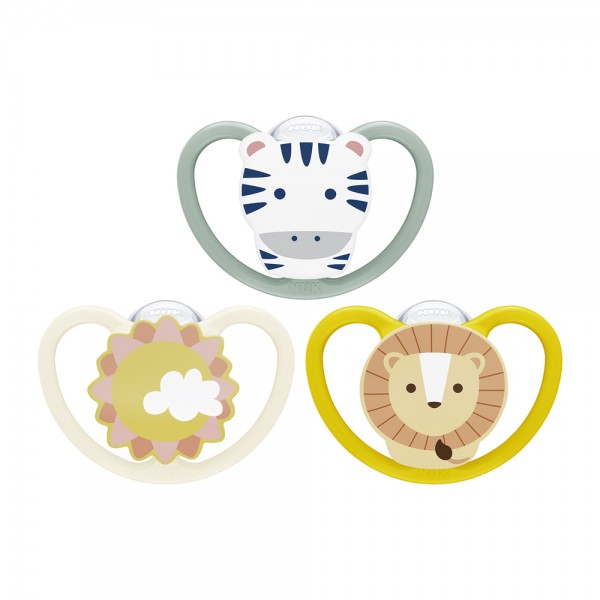 NUK cumlík Space silikónový, 6-18 mesiacov, 1ks v balení- Vylepšený originálny tvar cumlíka NUK - pripomína tvar matkinej bradavky počas dojčenia, vďaka čomu perfektne vyhovuje detskej pusinke pri saní- Extra veľké ventilačné otvory pre maximálnu cirkuláciu vzduchu, pokožka bábätka tak môže dýchať - perfektná pre detskú citlivú pokožku- Tenší a užší cumlík redukuje tlak na čeľusť a zúbky- Odolná, znovupoužiteľná cestovná krabička- 6-18 mesiacov, bez BPA, 1ks v baleníNový cumlík NUK Space silikónový: pre obzvlášť citlivú pokožku bábätkaNaši najmladší majú od začiatku vlastnú hlavu, ale aj úplne odlišné fyzické vlastnosti. Detská pokožka je veľmi jemná a citlivá. NUK vynašiel nový cumlík NUK Space, aby chránil detskú pokožku tým najlepším možným spôsobom a poskytol vašim potomkom maximálne pohodlie za každej situácie. Cumlík zaujme svojím splošteným a úzkym cumlíkom, ktorý poskytuje dostatočný priestor pre prirodzené sacie pohyby. Cumlík NUK Space vyhovuje perfektne detskej pusinke počas sania. Viac ako 95% bábätiek cumlík NUK bez problémov prijme. Cumlík NUK Space má tiež extra veľké otvory na ventiláciu, ktoré sa starajú o maximálnu cirkuláciu vzduchu a umožňujú detskej jemnej pokožke dýchať. Z tohto dôvodu by 99 % mamičiek odporučilo cumlík NUK Space pre bábätká s citlivou pokožkou.Model NUK je dostupný v rôznych designoch. Roztomilý 3D zvieracie motívy v krabičke, ktorá šetrí miesto a dá sa použiť aj na cestovanie. Pribaľte cumlík NUK Space do svojej kabelky alebo tašky na plienky a majte ho po ruke zakaždým, keď bude treba. Cestovná krabička je vhodná aj na sterilizáciu v mikrovlnnej rúre. Vďaka tomu vám bude cumlík NUK Space pomocníkom na dlhú dobu.Nezávislý prieskum trhu so 114 mamičkami, Nemecko 2018.Doporučené odborníkmi: Cumlíky NUK upokojujú ešte lepšie ako kedykoľvek predtýmZdravý vývoj bábätiek je pre nás veľmi dôležitý, preto chceme, aby každé bábätko malo cumlík, ktorý je preňho prirodzený a vhodný na správny vývoj čeľuste. Vďaka ďalšiemu vývoju originálneho tvaru NUK, ktorý je vhodný pre čeľusť a je v súlade s poslednými lekárskymi objavmi, upokojuje cumlík NUK ešte lepšie ako kedykoľvek predtým. Dojčené deti ho prijímajú veľmi dobre aj vďaka jeho známemu tvaru. Dojčiace mamičky potvrdili, že NUK cumlíky neovplyvňujú dojčenie.Cumlíky NUK navyše nespôsobujú zlý vývoj zúbkov alebo čeľustí. To zaisťuje úzky, sploštený cumlík. Cumlík minimalizuje tlak na malé zúbky a čeľusť - čo je o dôvod navyše, prečo sú NUK cumlíky oceňované a odporúčané pôrodnými asistentkami, pediatrami a ortodontistami.100 % ortodontistov potvrdzuje, že cumlíky NUK nespôsobujú zlý vývoj čeľustí ani zúbkov. 90 % mamičiek odporúča cumlík NUK a 92 % dojčiacich mamičiek potvrdzuje, že cumlíky NUK Space Pacifier neovplyvňujú dojčenie.Nezávislý prieskum trhu s 307 mamičkami; Nemecko 2017.Nezávislý prieskum trhu s 50 pôrodnými asistentkami, 50 pediatrami a 50 ortodontistami; Nemecko 2017.Multifunkčné balenieCumlík NUK Space má navyše svoju vlastnú praktickú krabičku. Tá sa postará o hygienické čistenie cumlíka v mikrovlnnej rúre, cestovaní aj skladovaní v čistote a bezpečí.