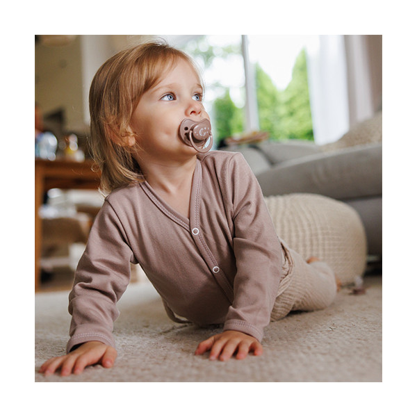 Anatomický silikónový cumlík pomáha upokojiť bábätko a dopraje všetkým chvíľku oddychu. Vypuklá horná a sploštená spodná časť cumlíka sa dokonale prispôsobí ústam dieťaťa a podporuje zdravý vývoj podnebia a zhryzu. Profilovaný štítik s otvormi umožňuje voľné dýchanie a zabezpečuje cirkuláciu vzduchu okolo úst. Náustok je vyrobený z hypoalergénneho, bezpečného silikónu, ktorý je odolný voči poškodeniu a neobsahuje BPA. Balenie obsahuje 2 cumlíky pre deti vo veku 18+ mesiacov – jeden na denné použitie a jeden so svietiacou rúčkou, ideálny na nočné upokojenie.Vlastnosti:- Anatomický náustok – vypuklá horná časť sa prispôsobí podnebiu, sploštená časť ponecháva priestor pre jazyk a podporuje správny vývoj zhryzu a prehĺtania- Denný a nočný cumlík – v balení nájdete jeden klasický a jeden so svietiacou rúčkou, ktorý ľahko nájdete aj v tme- Svietiaci úchyt – uľahčí nájdenie cumlíka v noci, aj keď spadne do postieľky- Profilovaný štítik – umožňuje skontrolovať správne umiestnenie cumlíka v ústach dieťaťa- Voľný prietok vzduchu (Air Flow) – otvory v štítiku zabezpečujú cirkuláciu vzduchu a chránia citlivú pokožku pred podráždením- Bezpečné pre zuby – mäkký silikón s tenkým krčkom minimalizuje tlak na ďasná a zúbky- Možnosť pripevnenia retiazky – k rúčke cumlíka možno pripevniť retiazku alebo klip, aby bol cumlík vždy po ruke- Bezpečný silikón – 100 % hypoalergénny, odolný a bez škodlivých látok vrátane BPA- Jednoduché čistenie – cumlíky možno vyvariť vo vode, rýchlo sa dezinfikujú bez poškodeniaOdporúčanie logopéda:Anatomické silikónové cumlíky podporujú správne prehĺtanie a polohu jazyka počas sania. Profilovaný tvar napodobňuje prirodzený tvar maminho prsníka a tým podporuje zdravý vývoj ústnej dutiny už od prvých mesiacov života.Technické údaje:- Typ: anatomický cumlík- Materiál: 100 % silikón- Vek dieťaťa: 18+ mesiacov- Balenie: 2 ks cumlíkovRozmery balenia: 9,5 x 4 x 17 cmDôležité: Před prvým aj každým ďalším použitím cumlík dôkladne umyte a sterilizujte, napríklad vyváraním 5 minút vo vriacej vode. Neponechávajte produkt v dezinfekčných roztokoch dlhšie, ako je odporúčané. Nikdy nepripevňujte na cumlík šnúrky alebo stužky, ktoré nie sú certifikované (riziko udusenia). Pred každým použitím skontrolujte stav cumlíka – ak je poškodený alebo deformovaný, okamžite ho vymeňte. Odporúčaná výmena každých 1–2 mesiace z hygienických dôvodov. Nikdy nenamáčajte cumlík do sladidiel ani liekov – môže to spôsobiť zubný kaz. Ak sa cumlík dostane celý do úst dieťaťa, nepanikárte – nie je možné ho prehltnúť, vďaka otvorom v štítiku môže dieťa dýchať. Skladujte na suchom mieste pri izbovej teplote, mimo priameho slnka a zdrojov tepla.Adresa dodávateľa: Babyono sp. z o.o., Kowalewicka 13, 60-002 Poznań, Poland. +48 61 83 90 520, info@babyono.pl, www.babyono.com