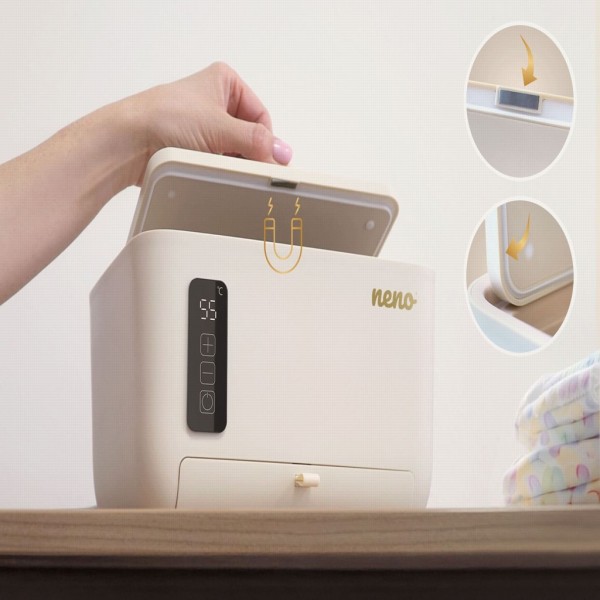 Zabezpečte svojmu bábätku maximálne pohodlie pri každej výmene plienky! Neno Calme je inteligentný ohrievač vlhčených aj suchých utierok, ktorý zaručuje príjemnú teplotu a vlhkosť, čím chráni citlivú detskú pokožku pred tepelným šokom a podráždením.Vlastnosti:- Tri úrovne ohrevu – zvoľte si teplotu 45°C, 50°C alebo 55°C podľa aktuálnej potreby- Ochrana pred vysychaním – utierky zostávajú vlhké a svieže po celý deň- Praktická zásuvka – vhodná aj na suché utierky, detské ponožky či obklady- Magnetické viečko s tesnením – udržiava teplo a znižuje energetické straty- Jednoduché vyberanie utierok – viečko bráni vytiahnutiu celého balenia naraz- Elegantný dizajn – dokonale zapadne do detskej izby, kúpeľne aj obývačky- Tichý chod – neruší bábätko počas spánku- Rýchly ohrev – utierky sú pripravené behom chvíľky- Dotykový panel – jednoduché a bezpečné ovládanie- Ochrana proti nechcenému zapnutiu – aktivácia podržaním tlačidla- Protišmyková základňa – stabilita na každom povrchu- Dvojstranný ohrev – utierky sa zahrievajú zhora aj zdola pre rovnomernú teplotu- Dlhý napájací kábel – až 170 cm pre jednoduché umiestnenie kdekoľvekObsah balenia:- Ohrievač vlhčených utierok Neno Calme- Návod na použitieTechnické parametre:- Teploty ohrevu: 45 °C, 50 °C, 55 °C- Napájanie: AC 220–240 V, 28 W, 50–60 Hz- Dĺžka kábla: 170 cmRozmery produktu: 24 × 15,5 × 18,3 cmDôležité: Pred použitím si prosím pozorne prečítajte pokyny. Výrobok nevkladajte do vody. Výrobok nevkladajte do parného sterilizátora na dezinfekciu. Neumiestňujte výrobok na prístupné miesto deťom. Po použití vždy odpojte zariadenie z elektrickej siete. Ak je výrobok poškodený, nerozoberajte ho sami. Obráťte sa na autorizovaný servis. Zariadenie môžu používať deti od 8 rokov a osoby so zníženou fyzickou, zmyslovou alebo mentálnou schopnosťou iba pod dohľadom alebo ak boli riadne poučené o bezpečnom používaní. Deti sa nesmú so zariadením hrať. Čistenie a údržbu deti nesmú vykonávať bez dozoru. Výrobok nie je hračka. Zariadenie je určené výhradne na domáce použitie alebo na použitie v podobnom prostredí (napr. kancelárie, hotelové izby, pod.).Adresa výrobcu: KGK Trend sp. z o.o., ul. Ujastek 5b, 31–752 Kraków, Poland. info@kgktrend.pl, NIP 678 315 51 46