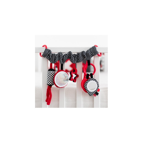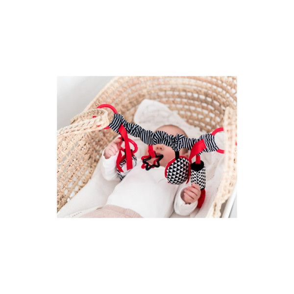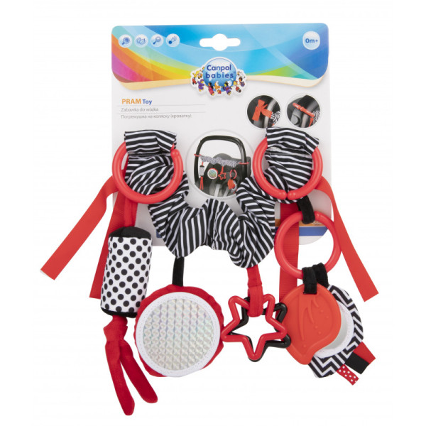 Kontrastná závesná hračka na kočík / autosedačku SENSORY. Závesná hračka so zrkadielkom je vhodná už pre najmenšie deti. Hračka má dve možnosti uchytenia a možno ju umiestniť na kočík, autosedačku alebo postieľku. Rôzne textúry materiálov stimulujú hmat dieťaťa. Zvonenia a šušťanie materiálov upúta detskú pozornosť. Viacfarebné stuhy povzbudzujú dieťa, aby ich chytilo. Elastická hryzátka upokojujú ďasná dieťaťa pri raste zúbkov. Senzorické farby stimulujú rozvoj zmyslov dieťaťa.O kolekcii SENSORY:Senzorická kolekcia hračiek bola vyvinutá pre deti do jedného roka. Počas tohto obdobia dochádza k najvýznamnejším zmenám v psychomotorickom vývoji dieťaťa. Senzorické hračky sú reakciou na aktuálny trend na trhu, ktorý sa zameriava na podporu rozvoja prostredníctvom zábavy, kedy rodič spolu s dieťaťom môže stimulovať rozvoj zraku, precvičovať schopnosť sústrediť pozornosť na objekt, zameriavať a nasledovať objekty očami alebo precvičovať obratnosť a koordináciu.Prečo sú senzorické hračky tak dôležité?Zrak dieťaťa je po narodení najmenej rozvinutým zmyslom. Tma, ktorá prevláda v maternici, nedovoľuje, aby sa zrak v prenatálnom období plne rozvinul. Po narodení je zrak dieťaťa rozmazaný a hmlistý. Dieťa vidí iba obrysy v rozmedzí 20-30 cm, veľké tvary a prvky z prostredia. Asi po mesiaci začne vidieť farby, spočiatku červenej a čiernej. Asi za tri mesiace si začne všímať ďalších výrazných farieb. Približne vo veku šiestich mesiacov začína vidieť detaily na obrázkoch a tiež vidí oveľa jasnejšie. V dvanástom mesiaci života je už zrak dieťaťa plne vyvinutý ako u dospelého a stáva sa skvelým nástrojom pre objavovanie sveta. Senzorické hračky z novej kolekcie SENSORY tak pomáhajú stimulovať zrak dieťaťa a trénujú schopnosť sústrediť pozornosť už od prvých týždňov života.POZOR. Aby ste predišli možnému zraneniu zo zamotania, odstráňte túto hračku, keď sa dieťa začne pokúšať vstať na ruky a kolená v polohe plazenia.Adresa výrobcu: Canpol Sp. z o.o.02-884 Warszawa, ul. Puławska 430, Polska Słubica B, ul. Graniczna 4, 96-321 Żabia Wola, Poland tel. (+48 46) 858 00 00fax: (+48 46) 858 00 01babies@canpolbabies.comwww.canpolbabies.com