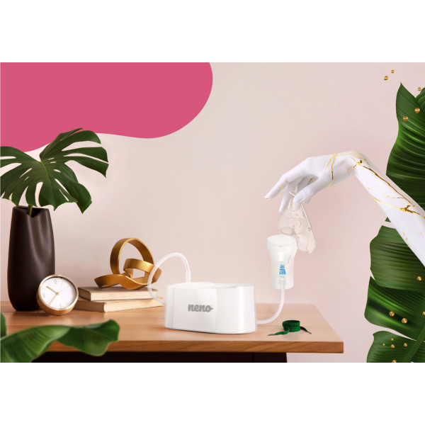 Zabezpečte úľavu pri dýchaní pre celú rodinu s kompresorovým inhalátorom Neno Sano vhodným pre deti aj dospelých. Tento piestový inhalátor je navrhnutý pre efektívnu a pohodlnú inhaláciu, či už bojujete s prechladnutím, zápalom dutín alebo iným respiračným ochorením.Vlastnosti:-Dve masky v balení – pre deti aj dospelých-Dva typy inhalácie – maskou alebo náustkom-Veľká nádoba na liečivo – až 8 ml na dlhšie inhalácie-Vysoká účinnosť – až 76 % vdychovateľnej frakcie častíc-Dlhá hadička – 150 cm pre pohodlné používanie detí a seniorov-Tichá prevádzka – len 52 dB pre nerušenú inhaláciu-Jednoduché ovládanie – jediné tlačidlo pre zapnutie-Stabilná základňa – 5 protišmykových nožičiek-Moderný dizajn – kompaktné a ľahké prevedenie-Jednoduchá údržba – rýchle čistenie a skladovanie-2 vymeniteľné vzduchové filtre – zachytávajú nečistoty zo vzduchuObsah balenia:-Inhalátor Neno Sano-Detská maska-Maska pre dospelých-Náustok-Lieková nádoba-Vzduchová hadička (150 cm)-2× náhradný vzduchový filter-Napájací adaptér-Návod na použitieTechnické parametre:-Napájanie: AC 100–240 V, 50/60 Hz-Kapacita nádoby na liek: ≤ 8 ml-Dĺžka hadičky: 150 cm-Počet masiek: 2 (1x dieťa, 1x dospelý)-Náustok: áno-Kapacita aerosólu: ≥ 0,20 ml/min-Priemerná veľkosť častíc (MMAD): cca 5 μm-Prevádzkový tlak: 20–80 kPa (2,9–11,7 psi)-Hlučnosť: ≤ 52 dB-Vdychovateľná frakcia: ≥ 76 %-Zvyškový objem (dead volume): ≤ 0,7 ml-Čas inhalácie: 25 min (potom 40 min prestávka)-Skladovacia teplota: -20 až 50 °C-Relatívna vlhkosť pri skladovaní: 30–85 % RH-Skladovací tlak: 700–1060 hPa-Hmotnosť prístroja: 315 g-Rozmery prístroja: 144 × 78 × 67 mm-Záruka: 2 roky (door-to-door servis)Rozmery balenia: 14,4 × 7,8 × 6,7 cmDôležité: Pred použitím si prosím pozorne prečítajte návod na použitie. Po každom použití jednotlivé časti vyčistite a bezpečne uskladnite. Pravidelne meňte filtre pre hygienické používanie.Adresa výrobcu: KGK Trend sp. z o.o., ul. Ujastek 5b, 31–752 Kraków, Poland. info@kgktrend.pl, NIP 678 315 51 46